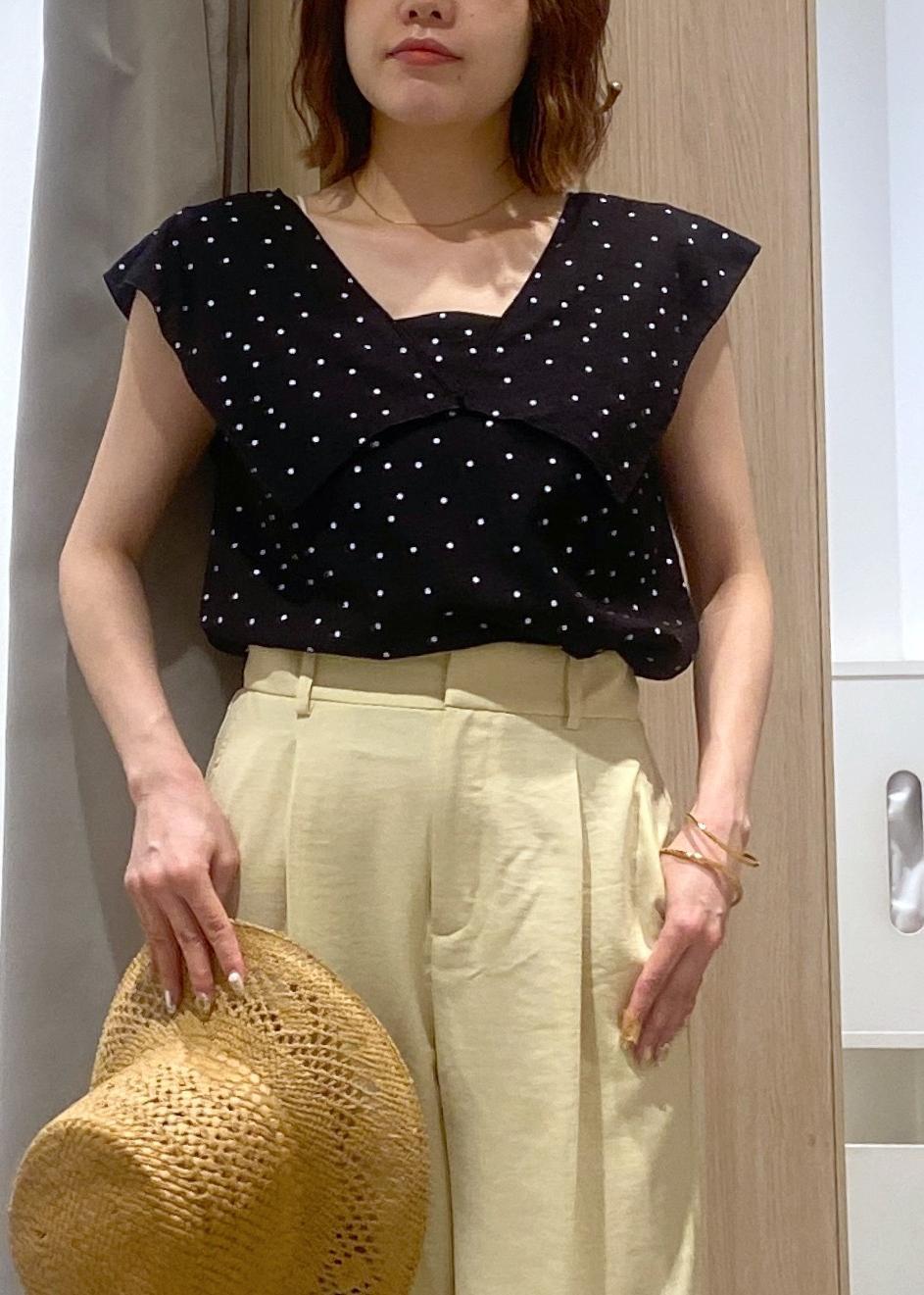 肩先までかかる大きな衿のデザインが華奢見えてさせてくれます。