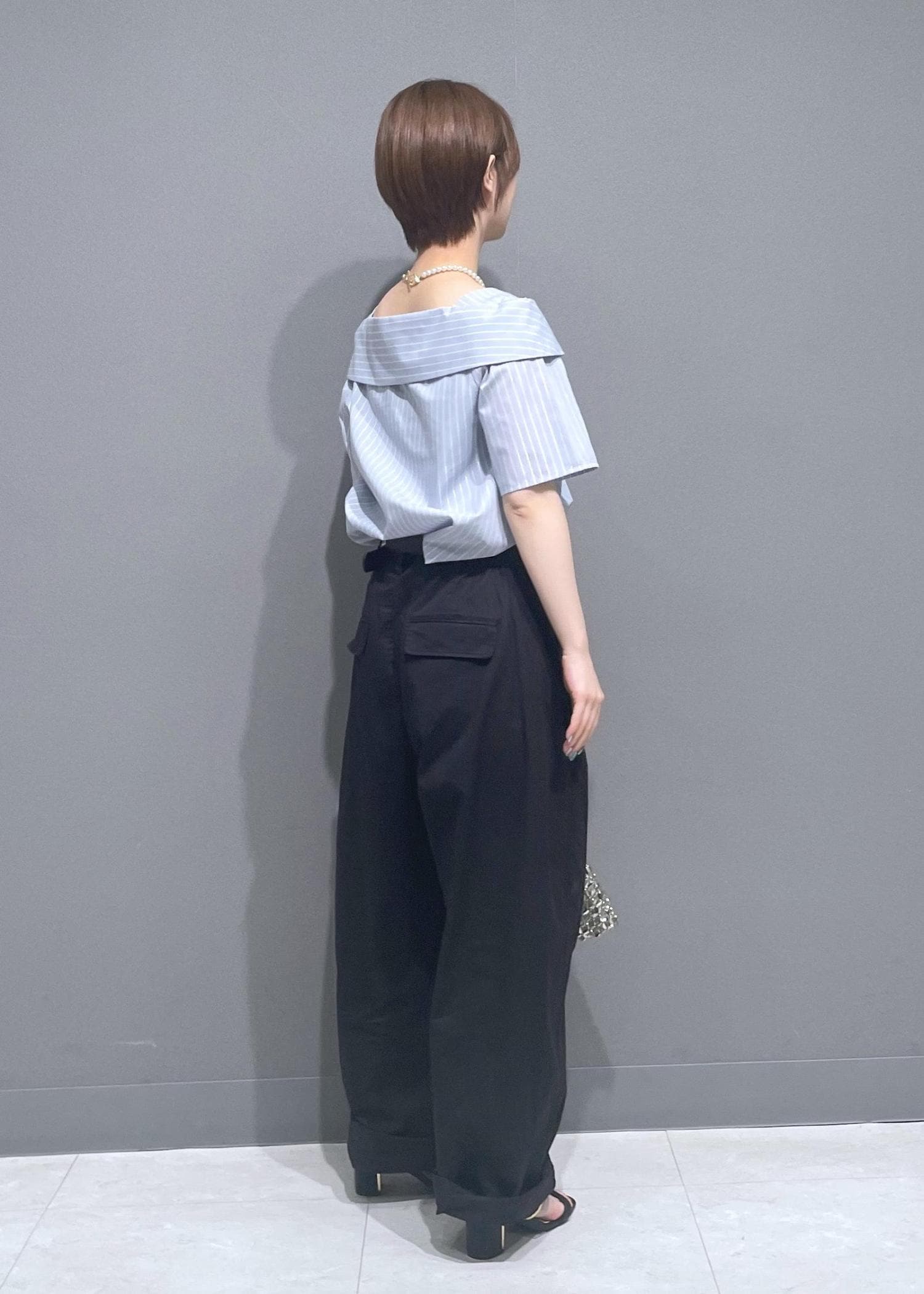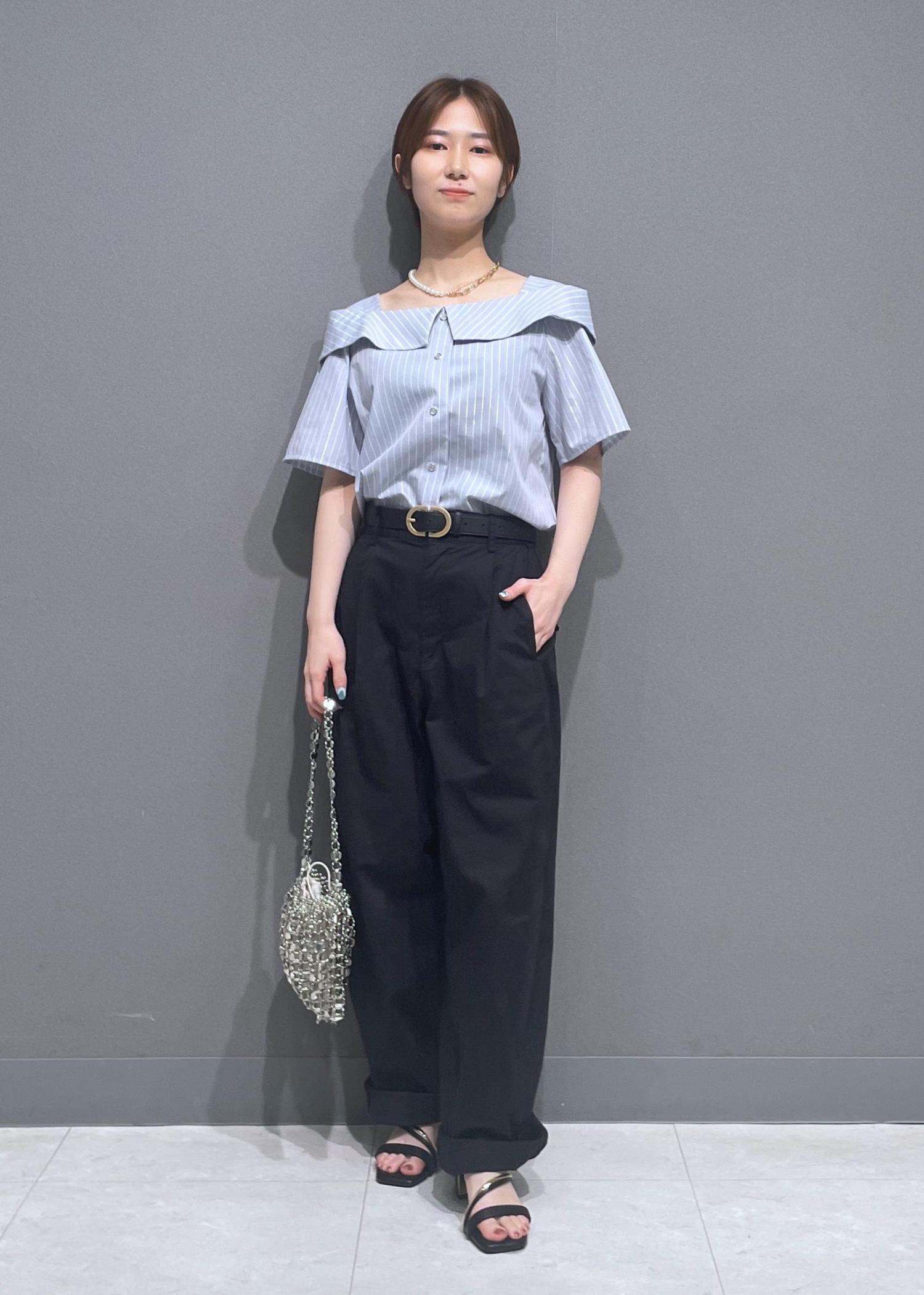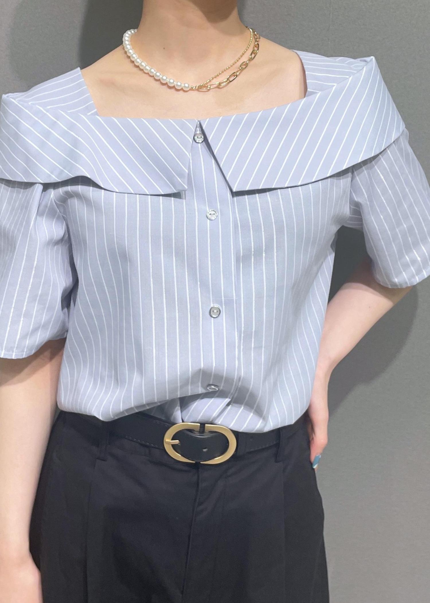首の開きは鎖骨がしっかり見えるので、顔周りがスッキリと見えます。 -