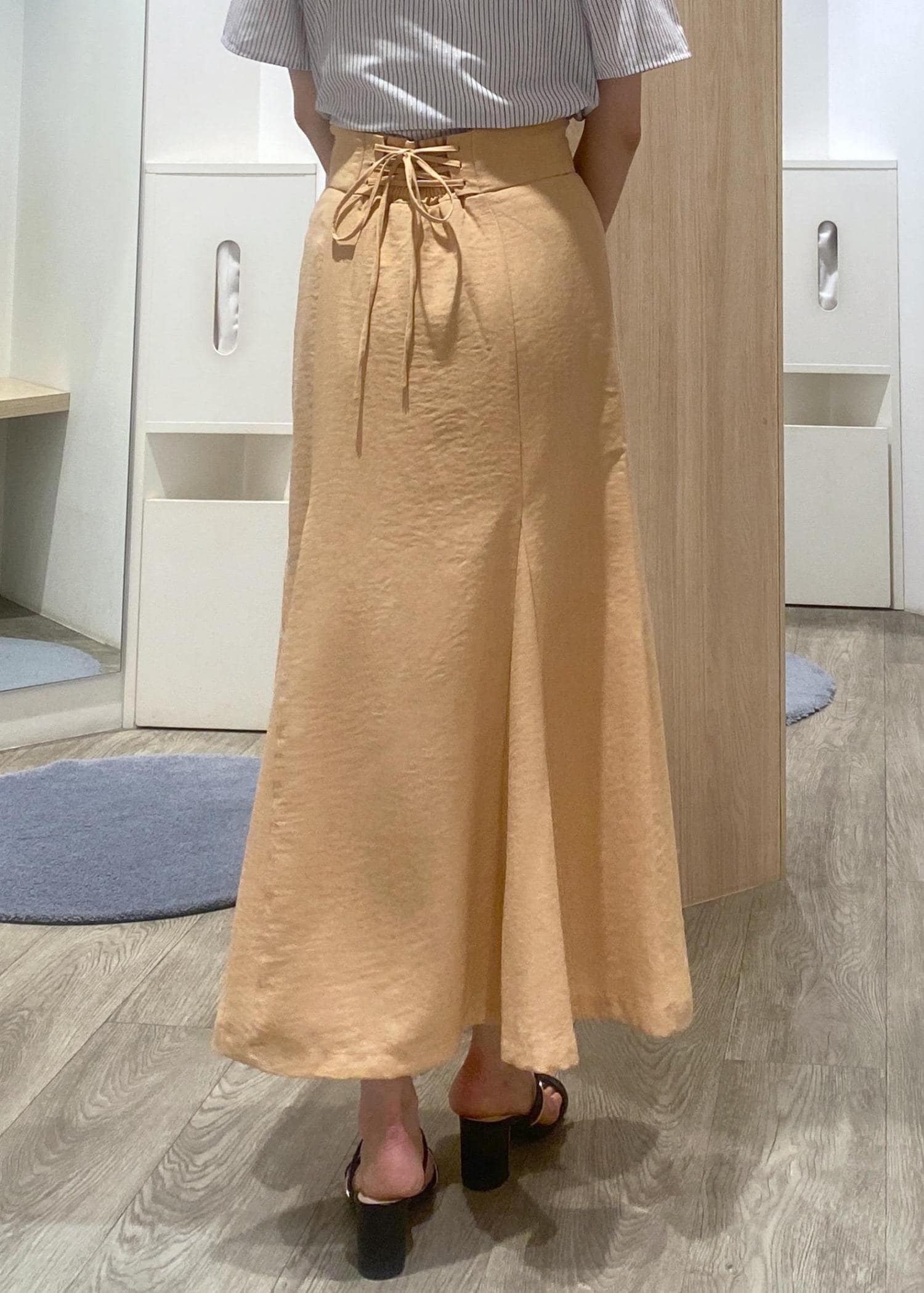 バックレースアップが女性らしく、レースアップを締めることでウエスト調整もできるのでジャストサイズで履けました。