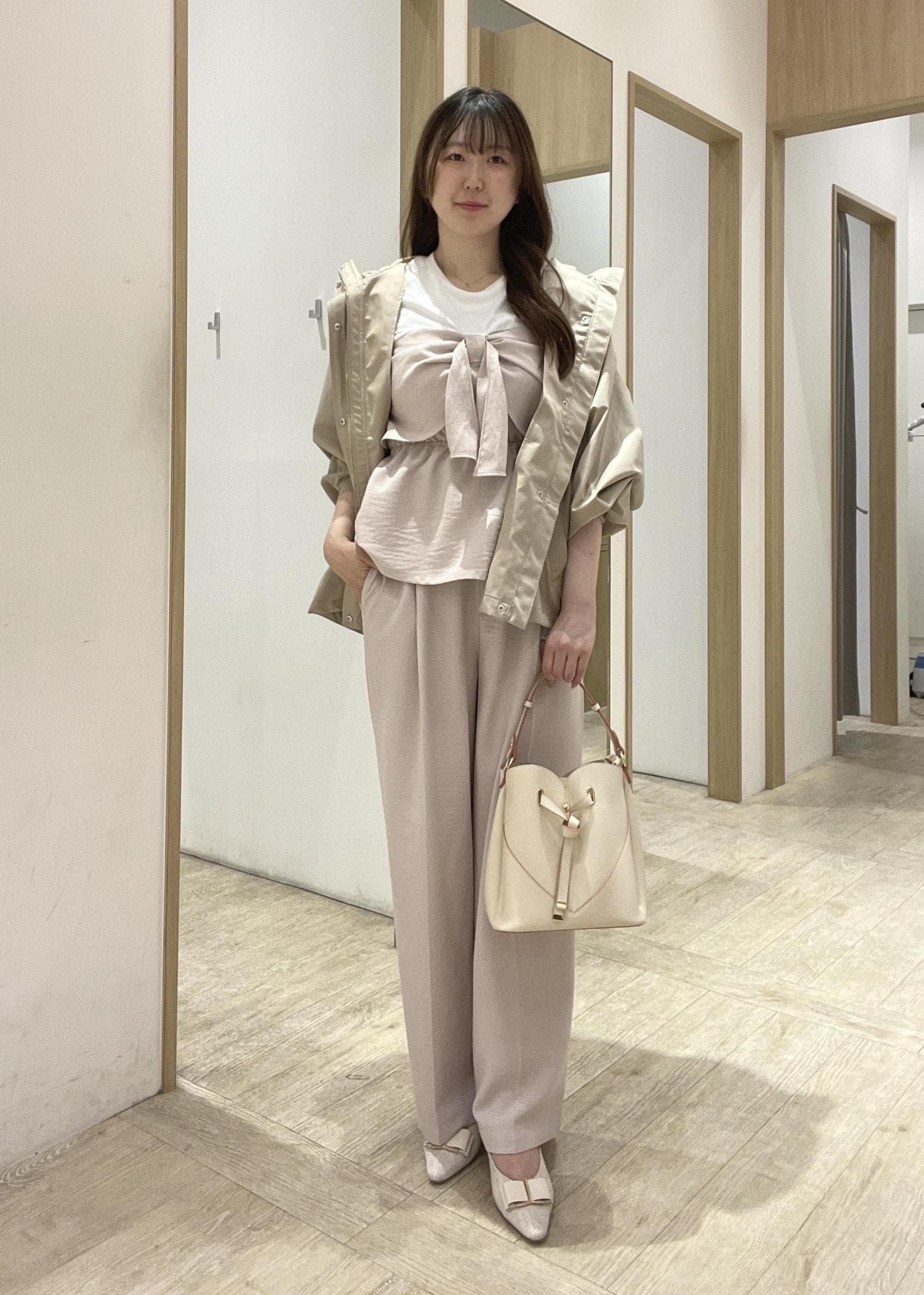 今回のベージュ系は縁取りがピンクで、ほどよく甘さがあります。500mlのペットボトルや長財布も入ります。 -