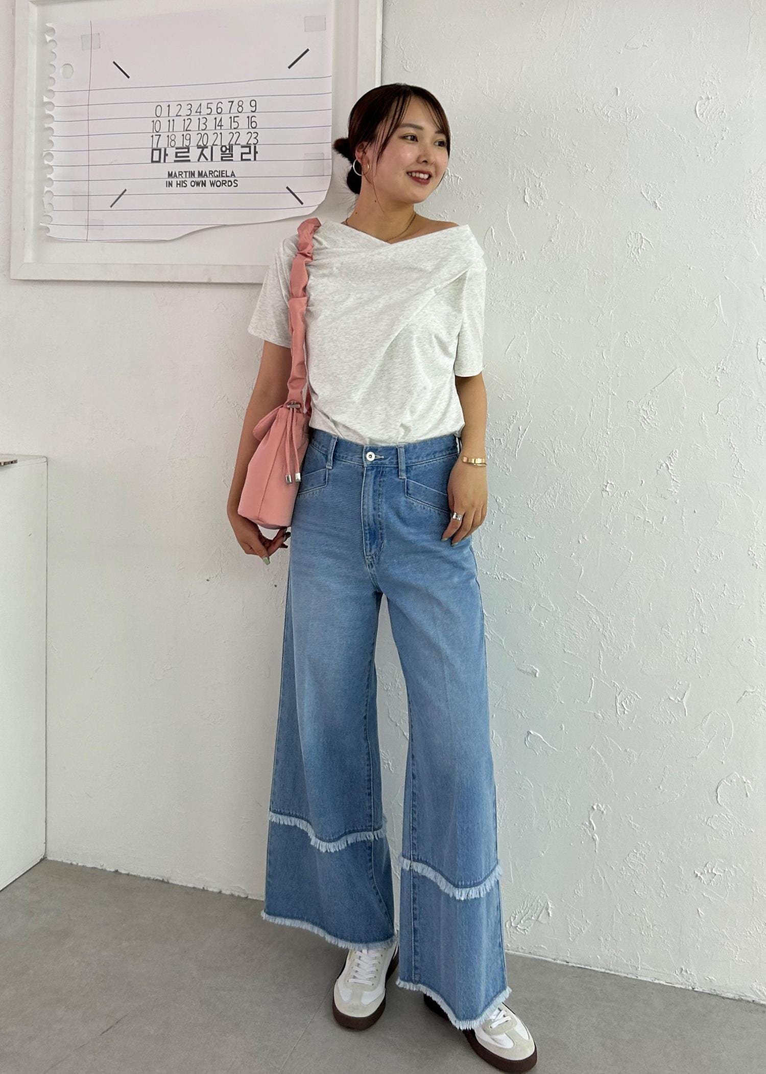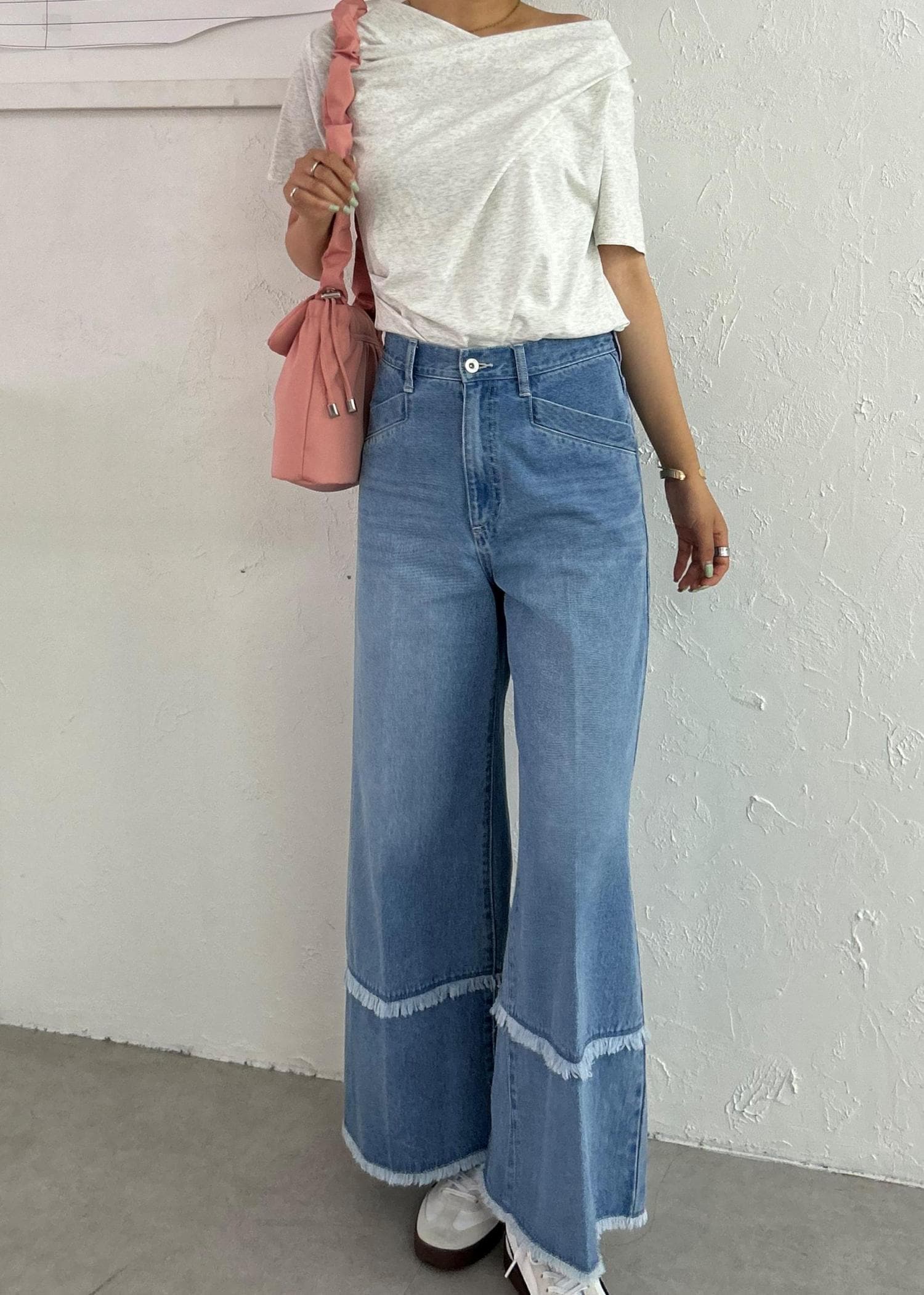VISフリンジフレアデニムサックス / M¥4,395レビューフリンジデザインがお洒落見えしトレンド感のあるデニムです!