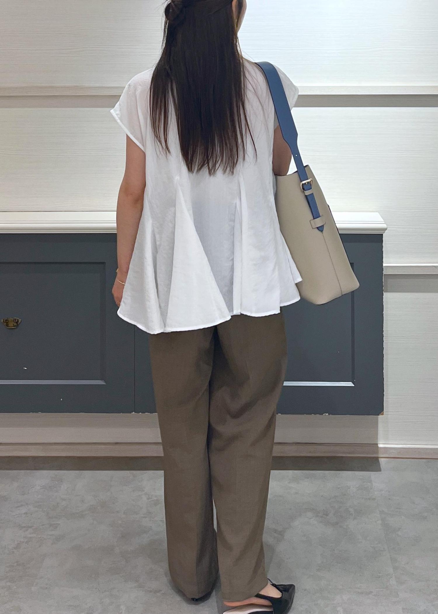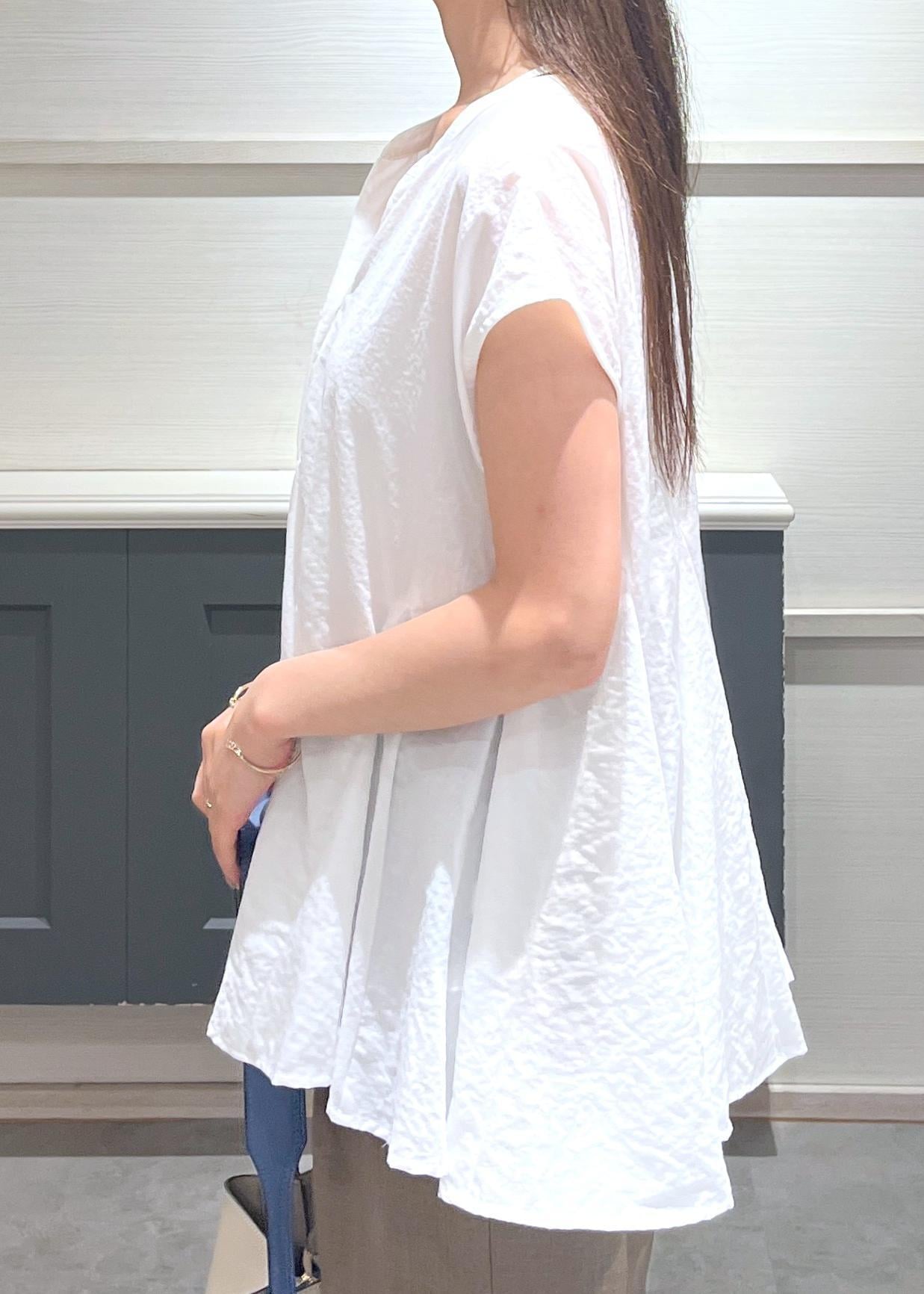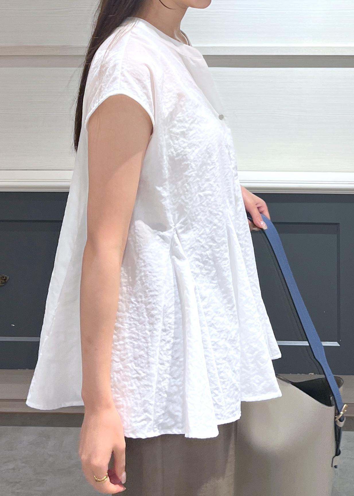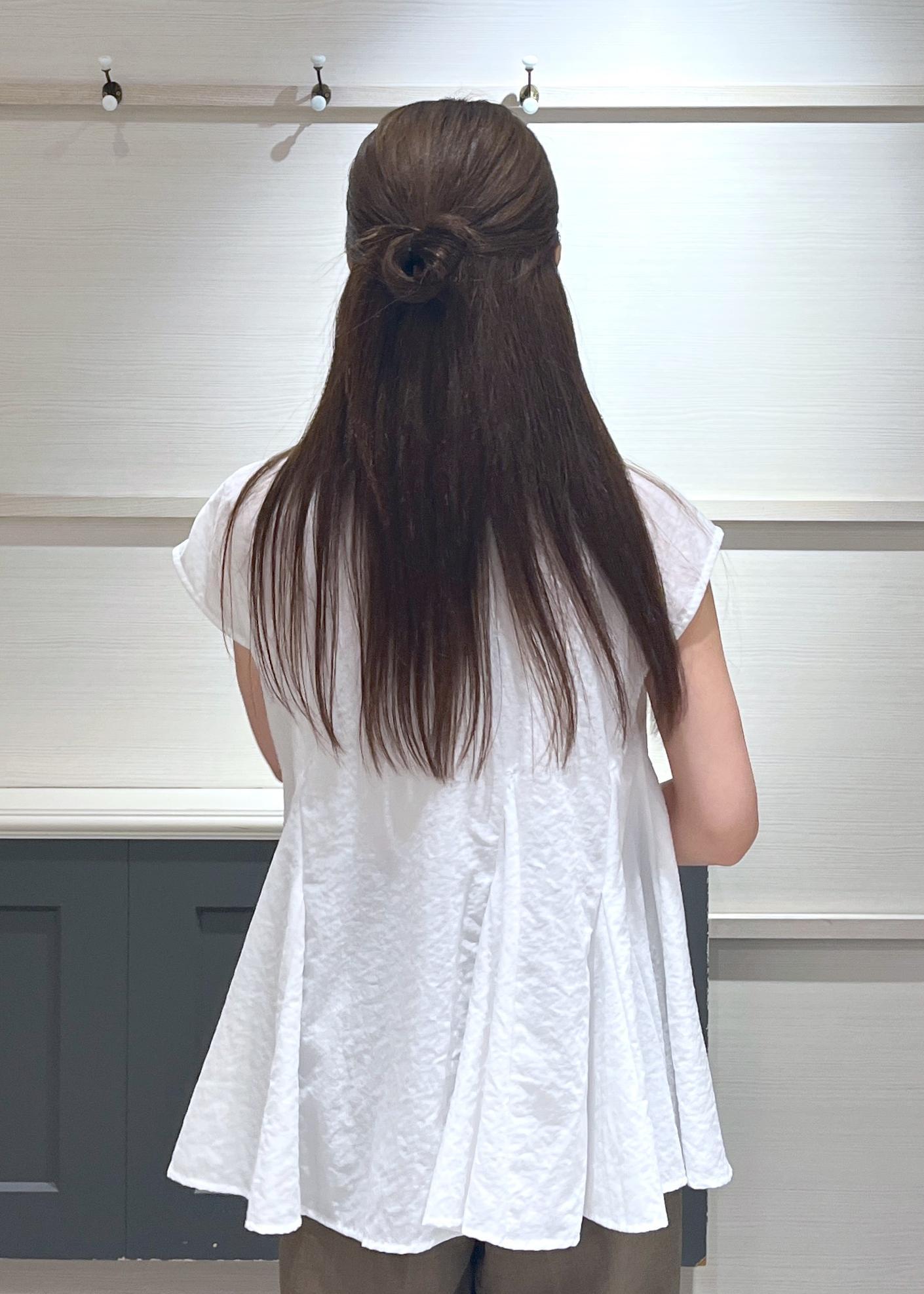 アウトレットVIS【防シワ/洗える】スキッパーフレアブラウスホワイト / F¥3,293レビュー156cmでヒップがほとんど隠れる丈感です。