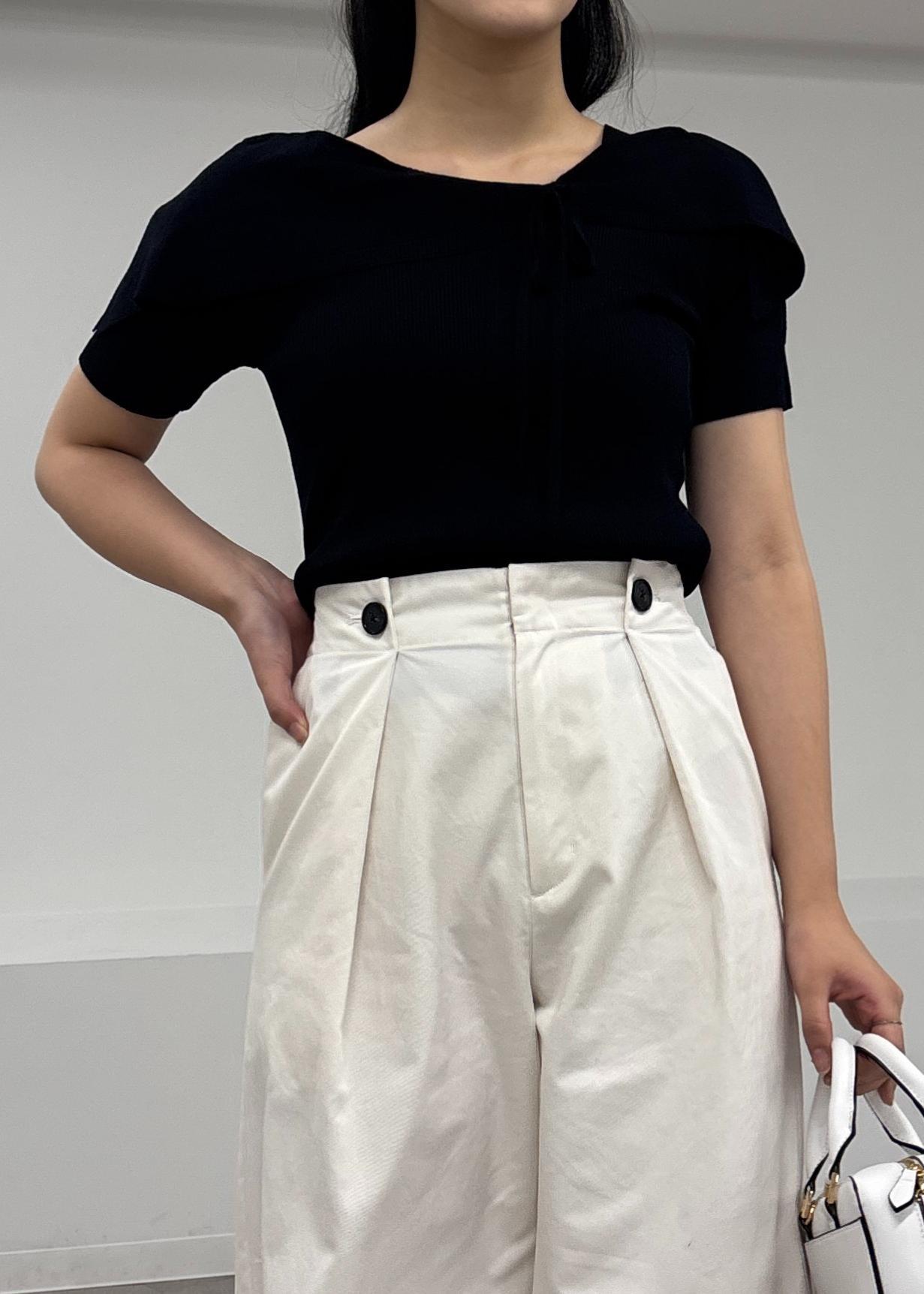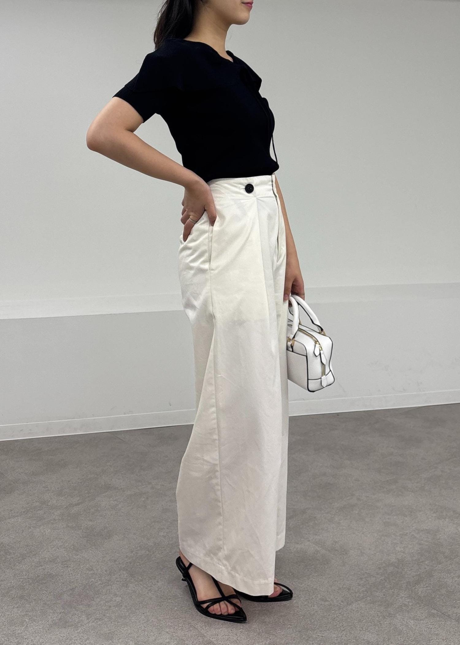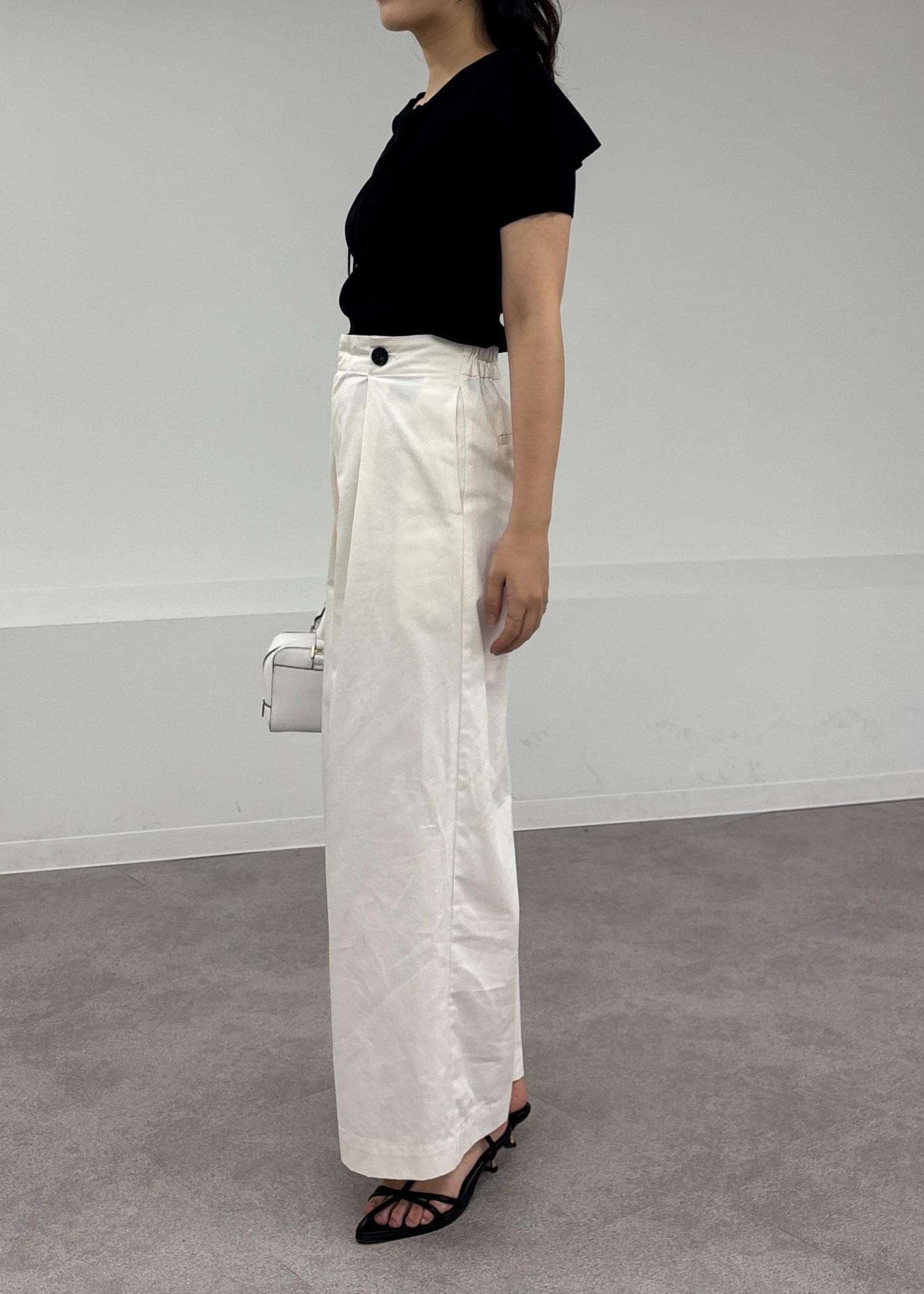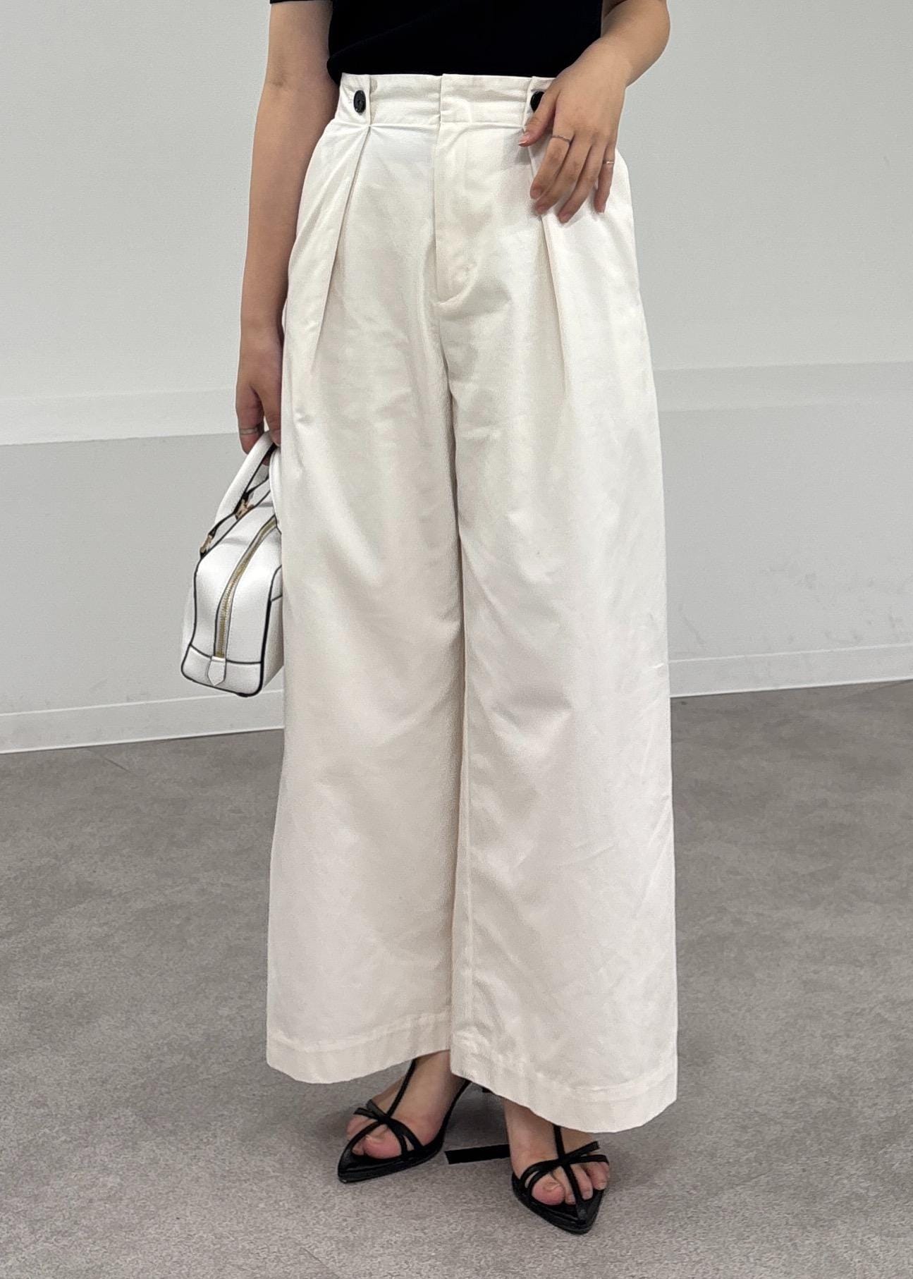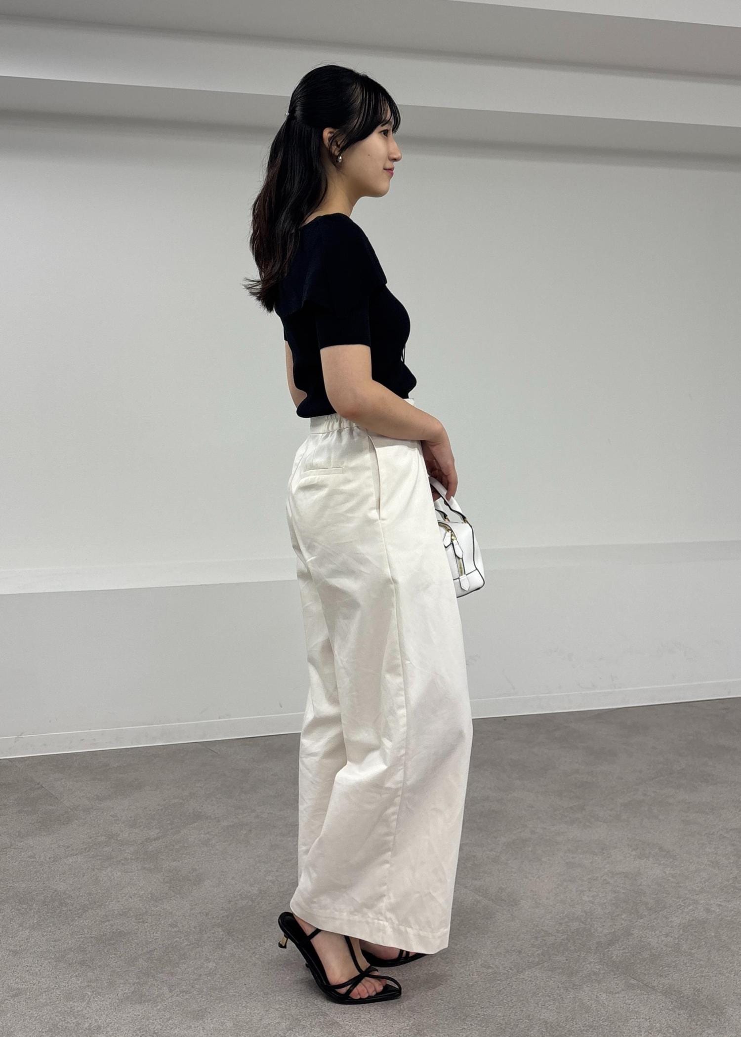 太めなバギーパンツ。ウエストはややフィット感があり、メリハリが出てすっきり着用出来ます◎