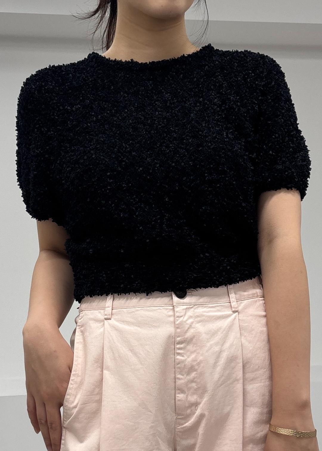 VIS【WEB限定】リボンヤーンバルーン袖サマーニットブラック / F¥2,745レビュー柔らかなリボンヤーンが可愛い!