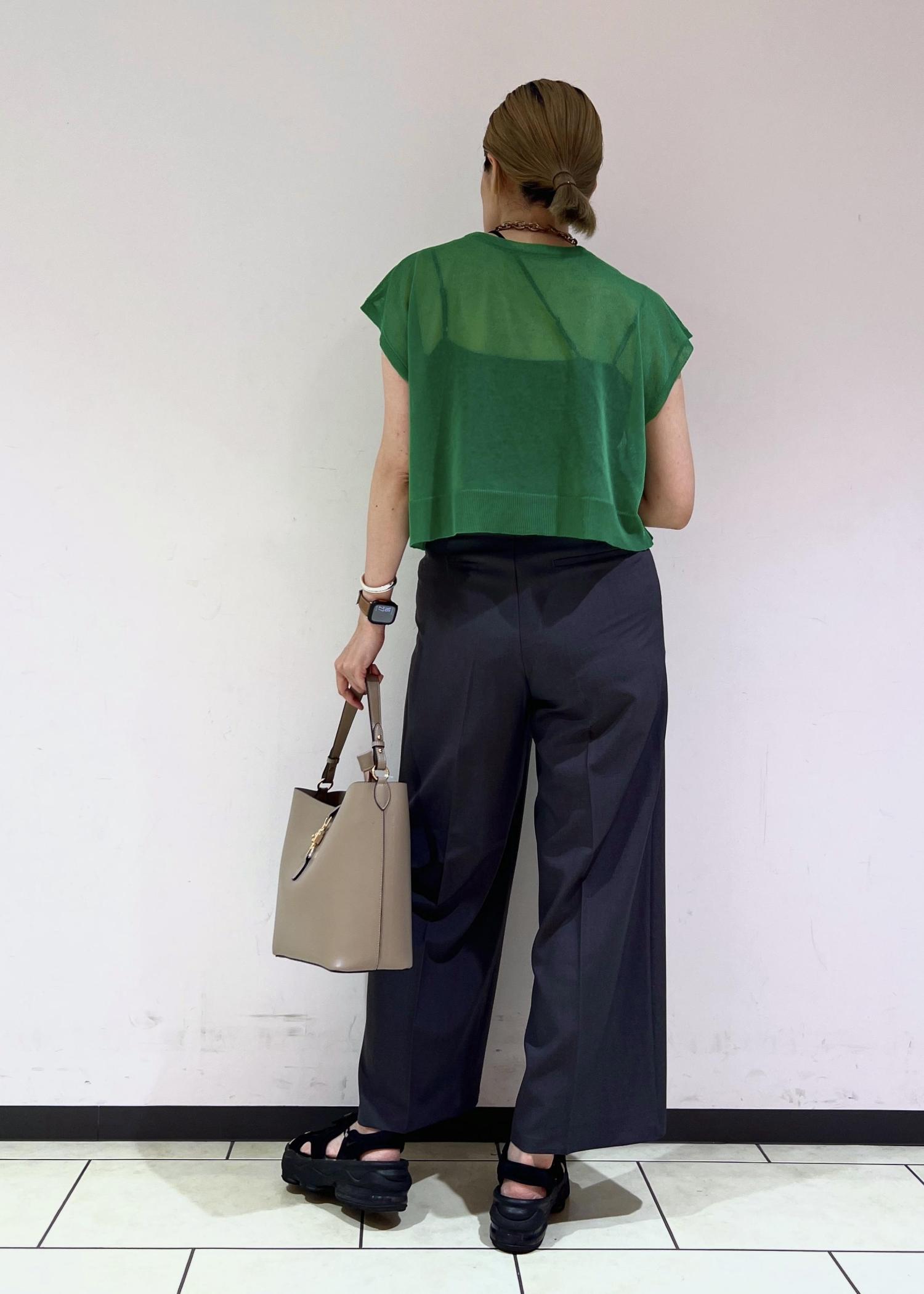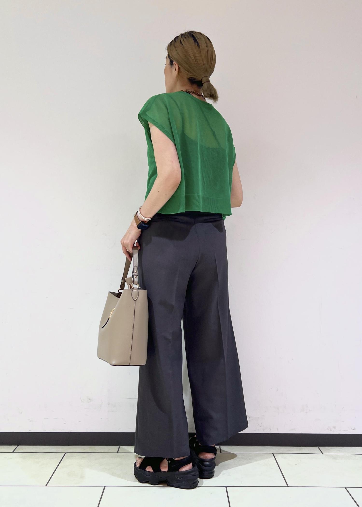 夏らしいさらりとした素材感で踵が出てもサンダルなどと相性の良い丈になりました。