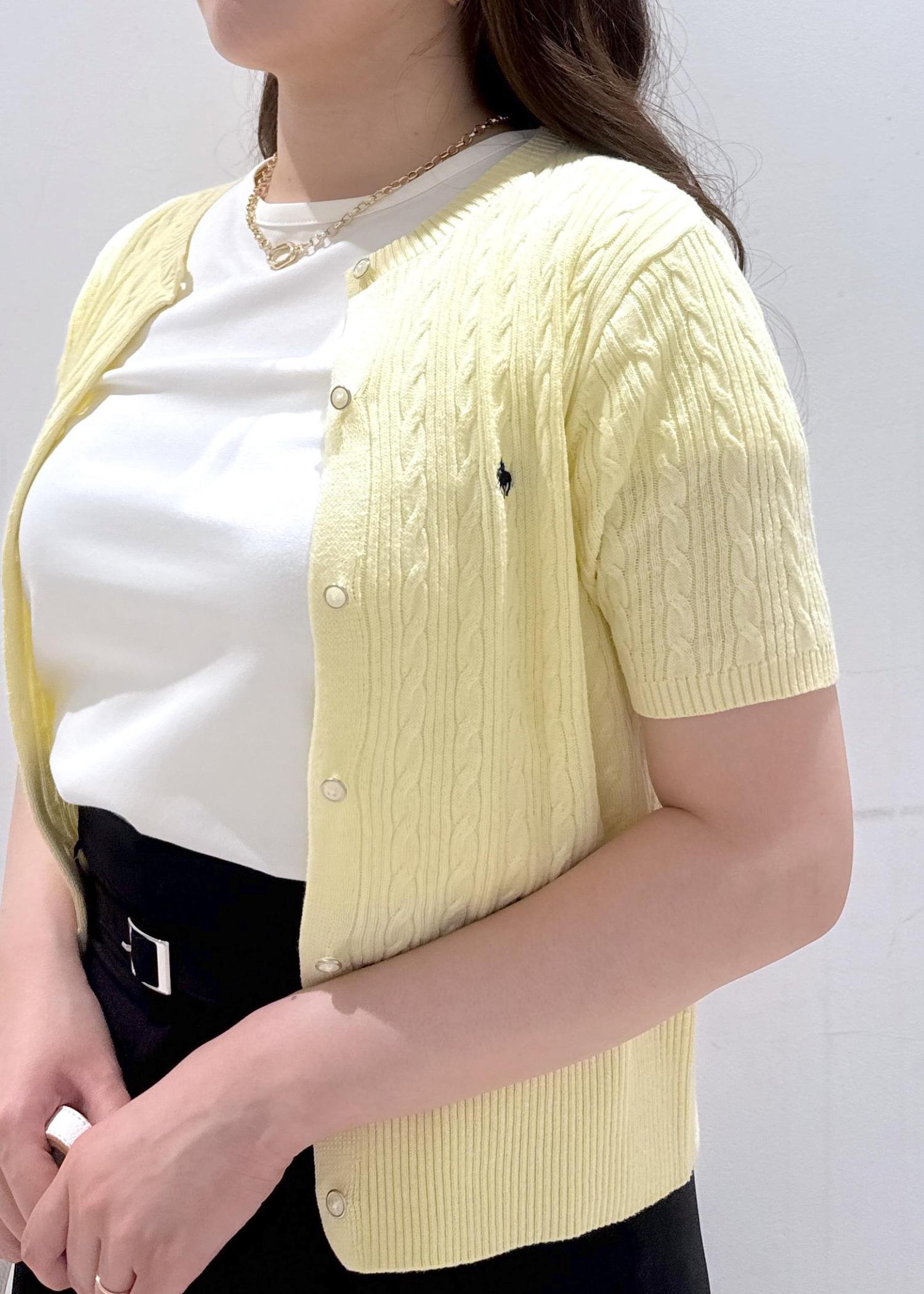 VIS【POLO BCS】VIS別注ハーフスリーブミニケーブルカーディガンイエロー / F¥6,600レビューVIS×POLOとのコラボアイテム⭐︎