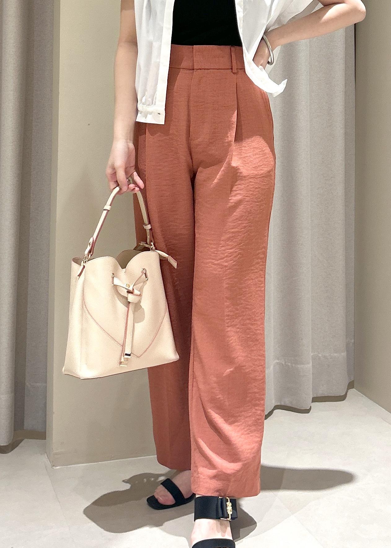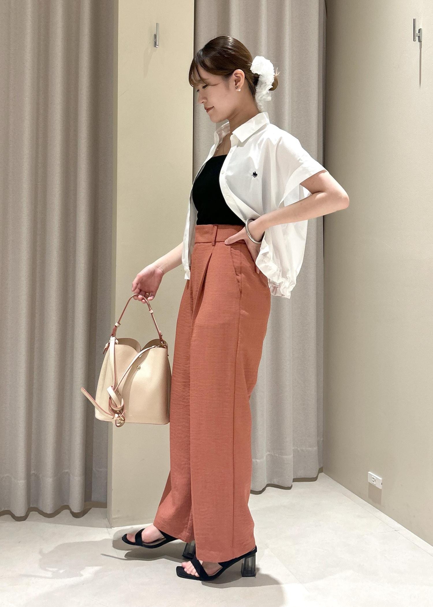 VIS【美easy】ワンタックワイドスラックスパンツ/洗えるオレンジ系 / SS¥5,489レビュー薄目の生地でサラッと涼しく着れます。ウエストはボタンで調節可能です。