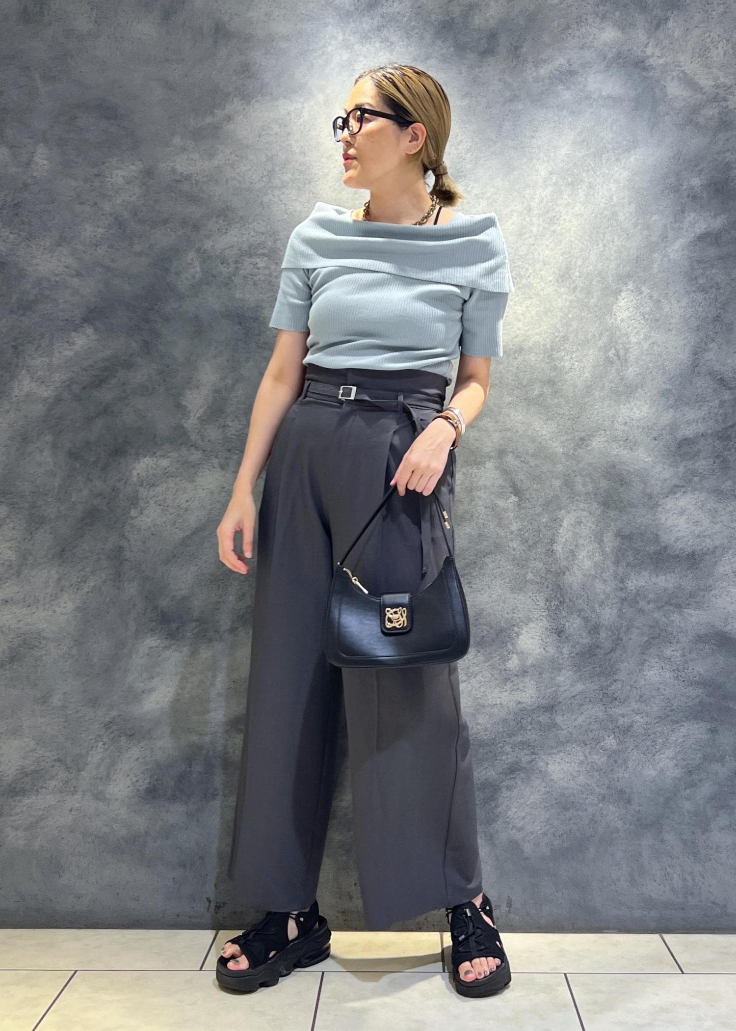 VIS【アンチピリング/UVケア/洗える】オフショルハーフスリーブニットライトグリーン / F¥4,939レビュー人気ニットの新色含めた再販を記念してコーディネートチャレンジ!