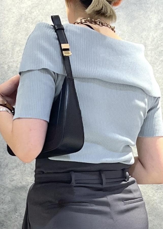 肩が出ないから安心のオフショルダー風ニットトップスに新色が追加されました。