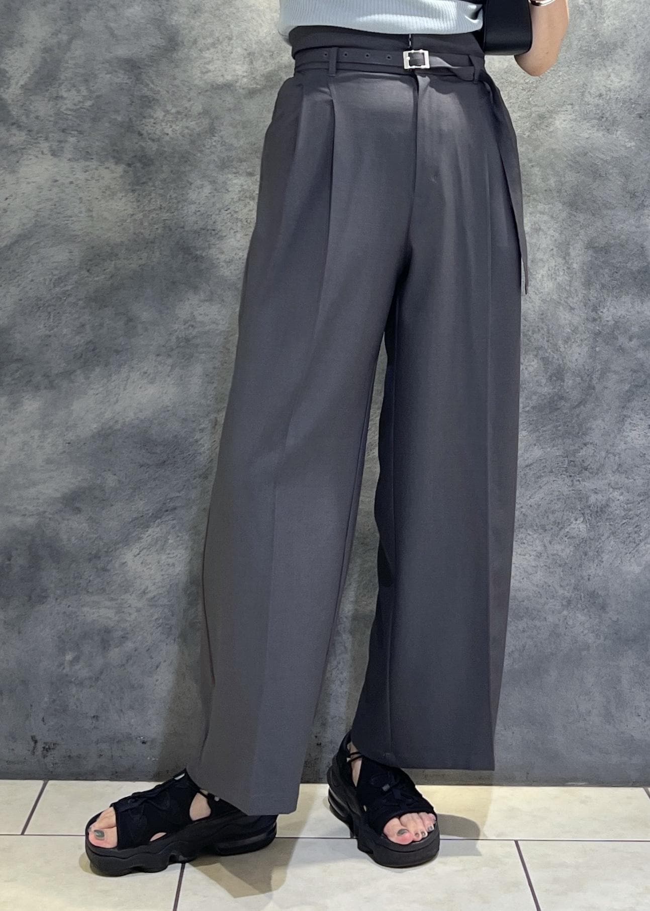 VIS【新色追加】【防シワ/接触冷感】ベルトディテールタックワイドスラックスパンツチャコール / M¥6,589レビューサイズがMまでだったのでどうしようかと焦りましたが、