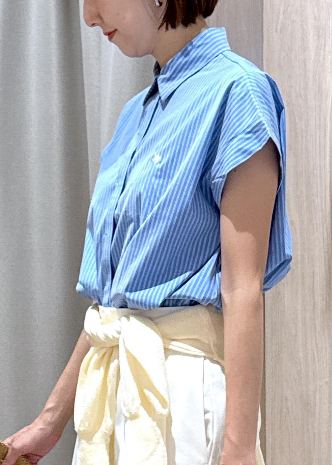 VIS【POLO BCS】VIS別注フレンチスリーブドローストリングシャツブルー / F¥6,050レビュー身長166センチで腰下の長さでした。