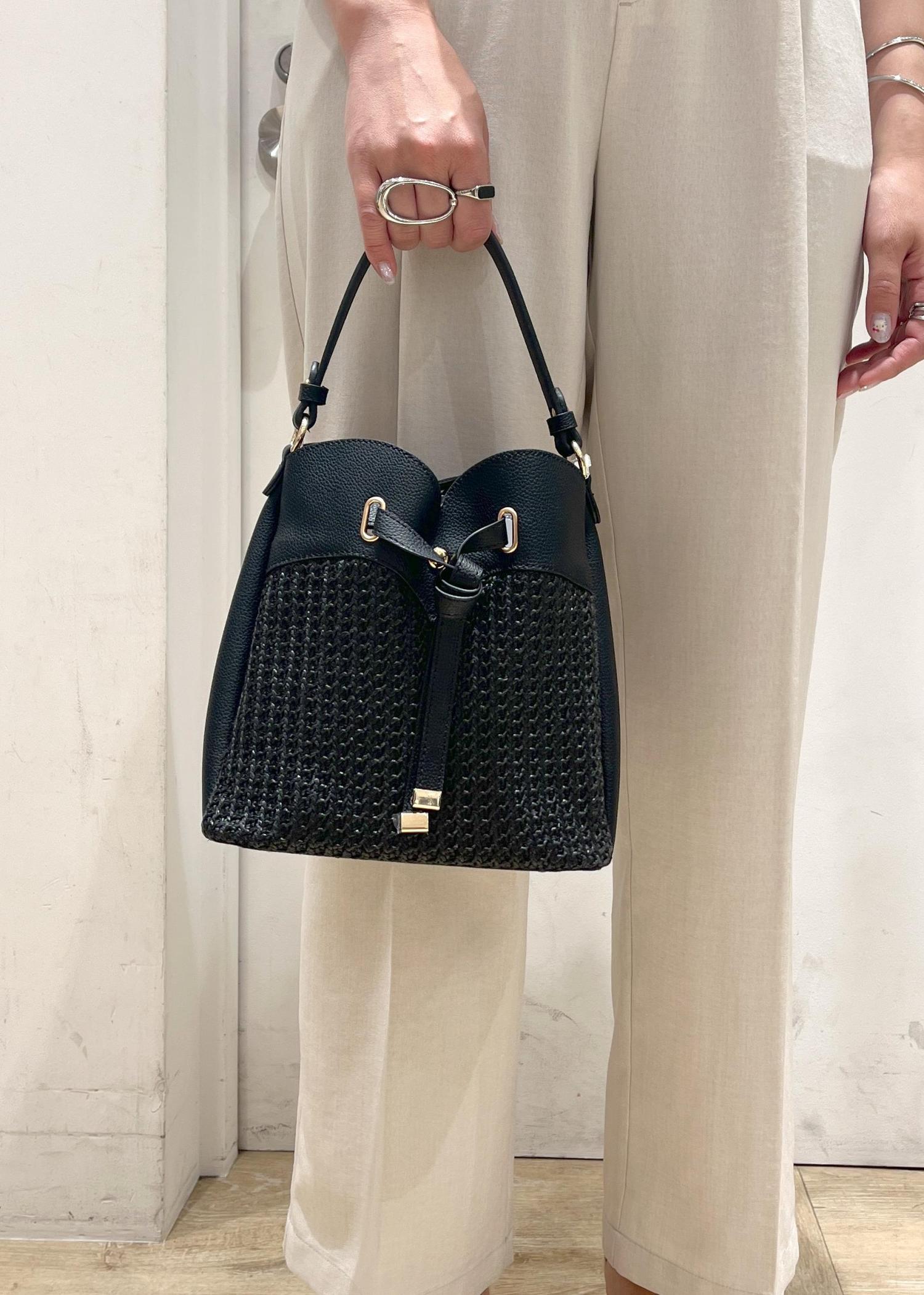 VIS【2WAY】ハートカットカゴバッグブラック / F¥6,919レビュー人気のハートバッグから雑材デザインが登場!