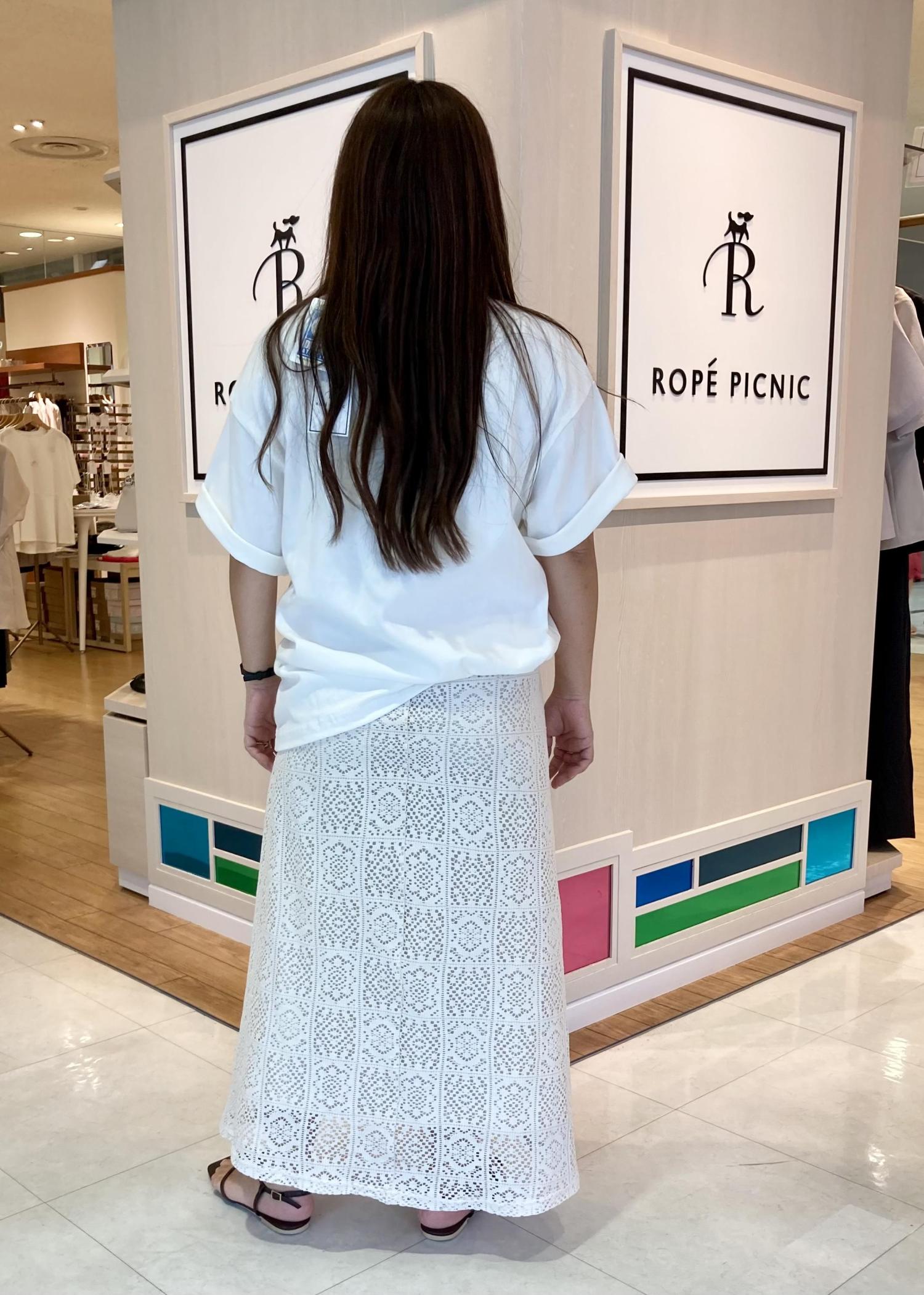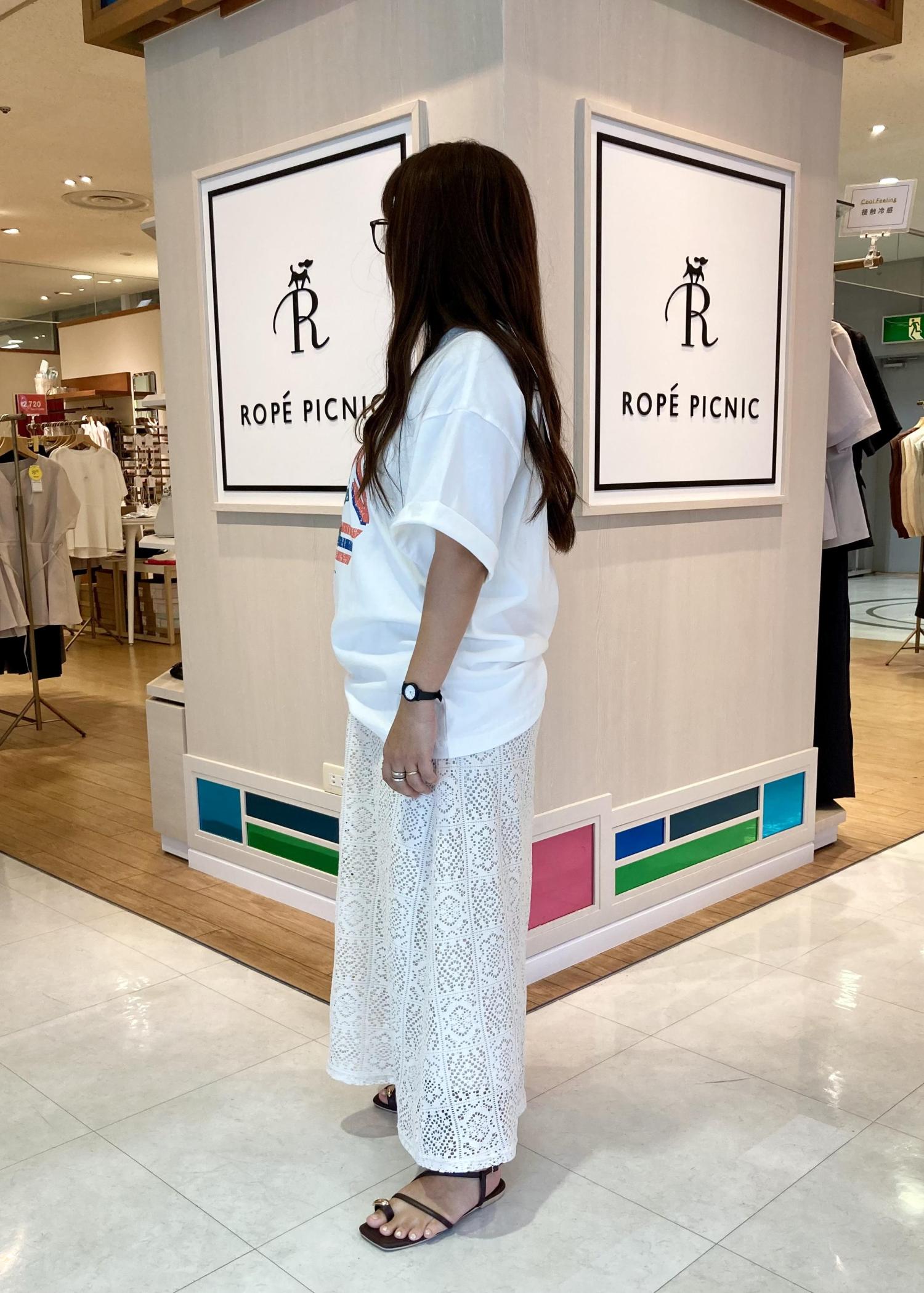 オーバーサイズのカジュアルなロゴTにワンピースを合わせたレイヤードスタイルです。