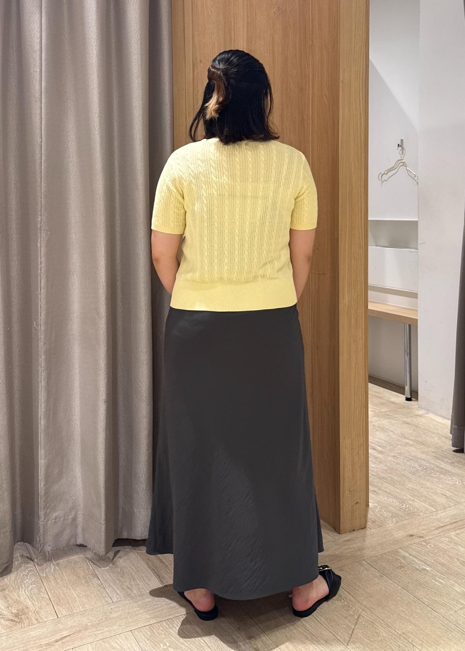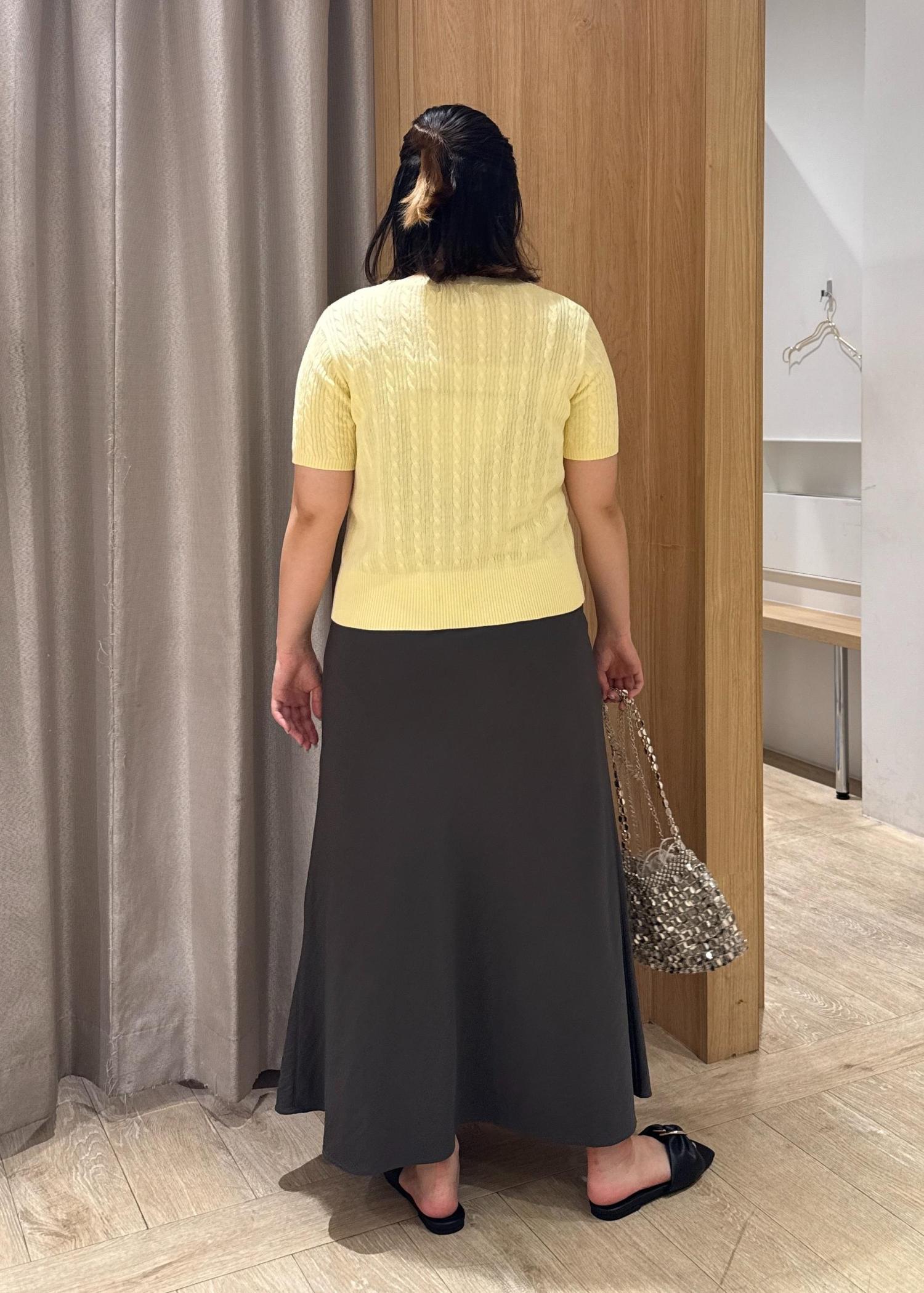 黄色のカーディガンを主役に落ち着いた色でまとめました!