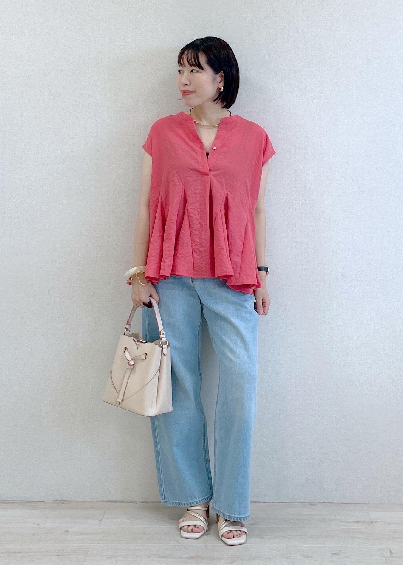 シンプルな着こなしですが、色味とブラウスのシルエットで遊びもあり、写真映えもばっちりです!