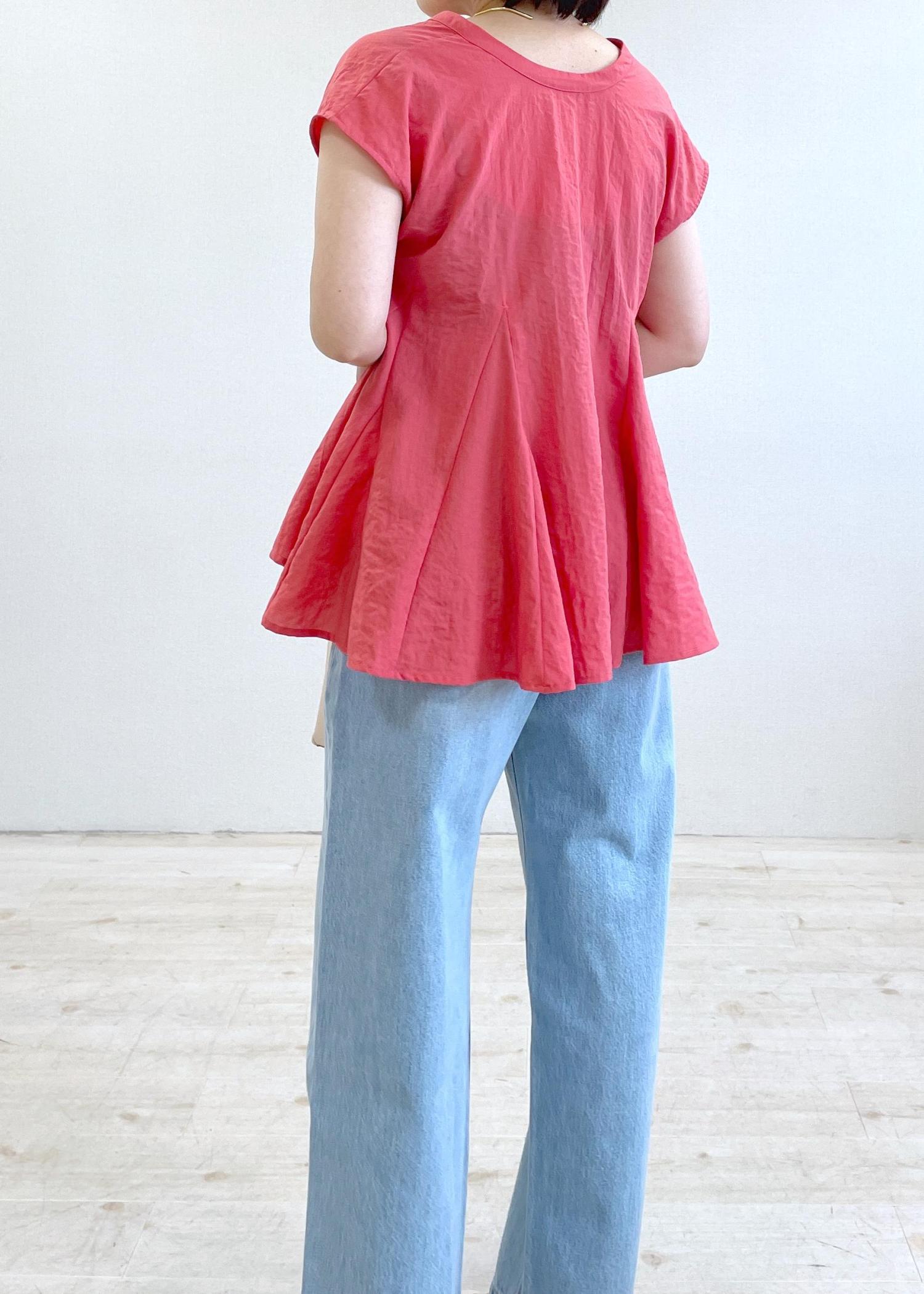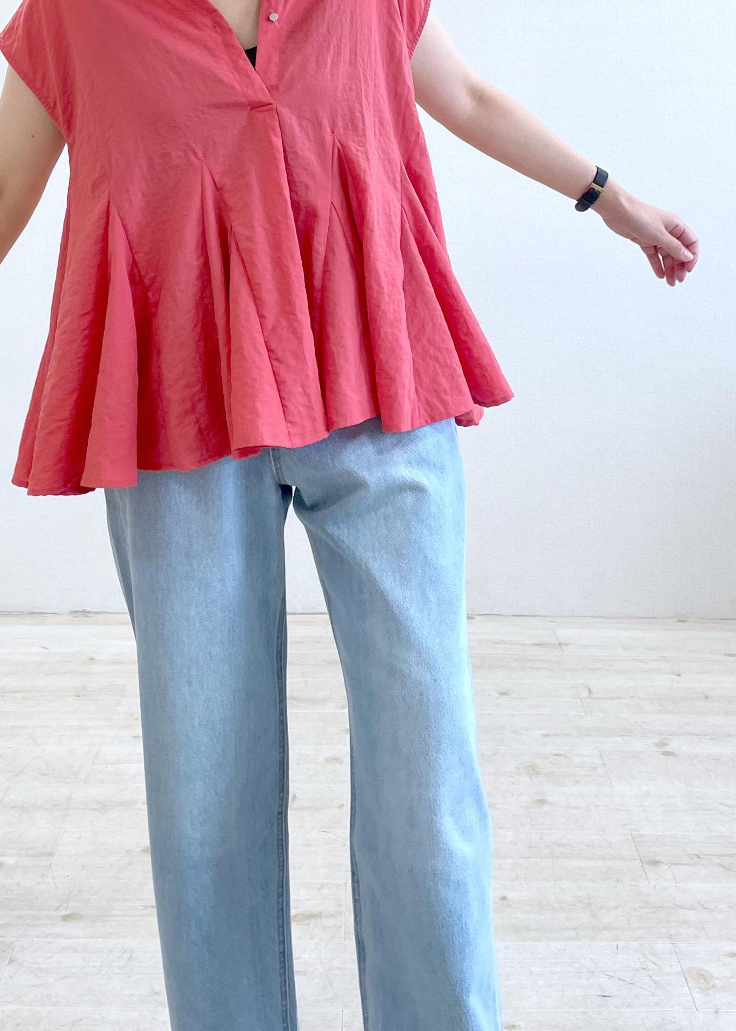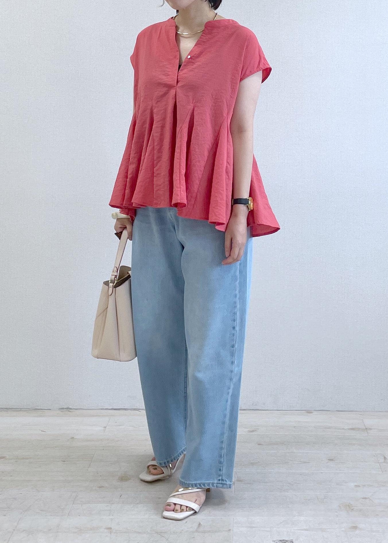 フレンチスリーブで二の腕は細見え、スキッパーシャツなので、お首周りもすっきりします。