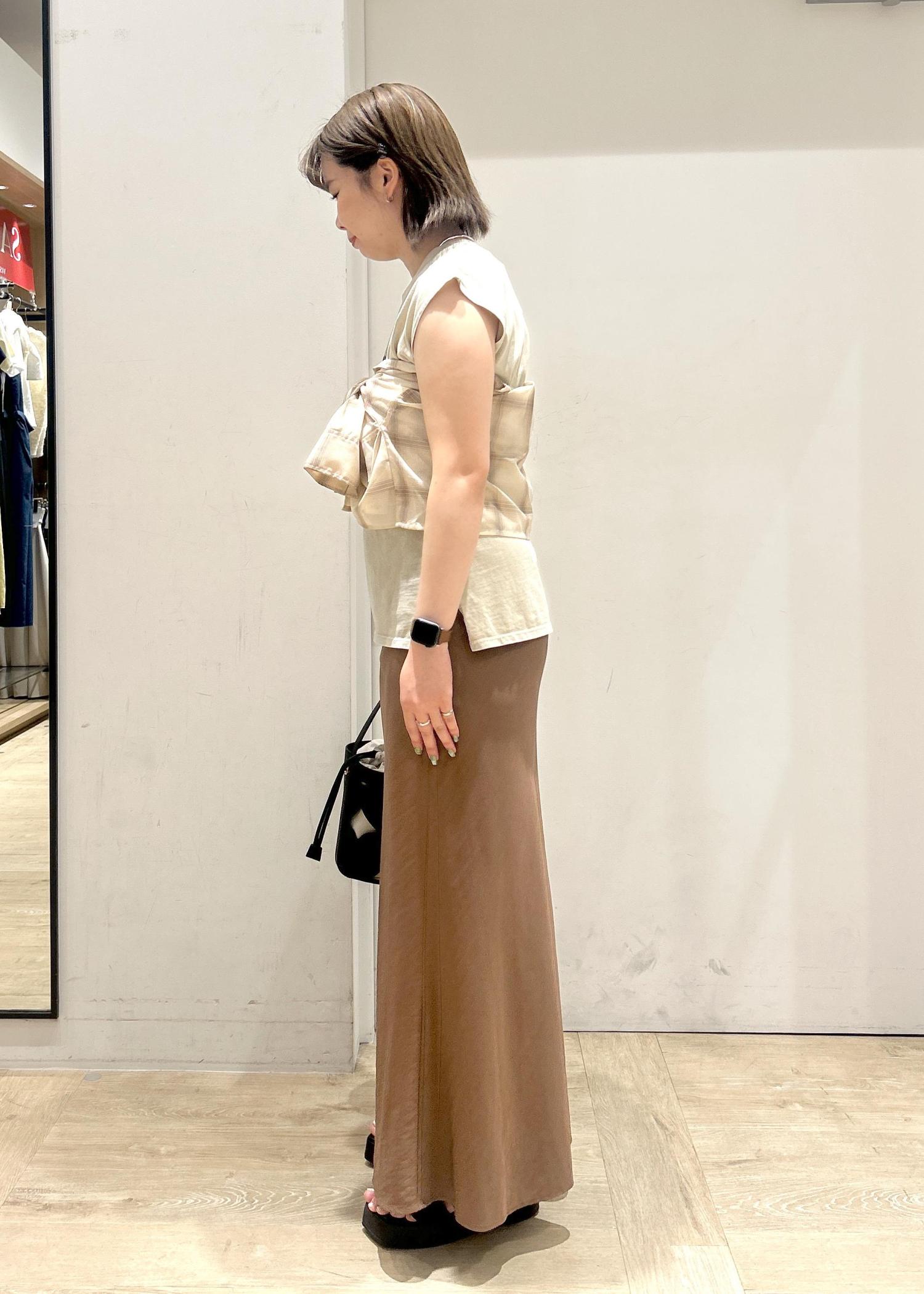 アウトレットVISバイヤス仕立てナローキャミワンピースブラウン / F¥3,076レビュー163cmで腰上くらいの着丈。