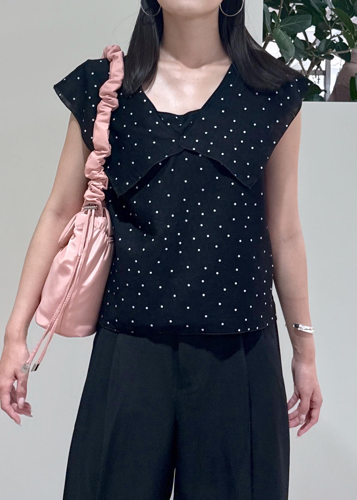 デコルテ見せデザインで女っぽさのあるブラウス。