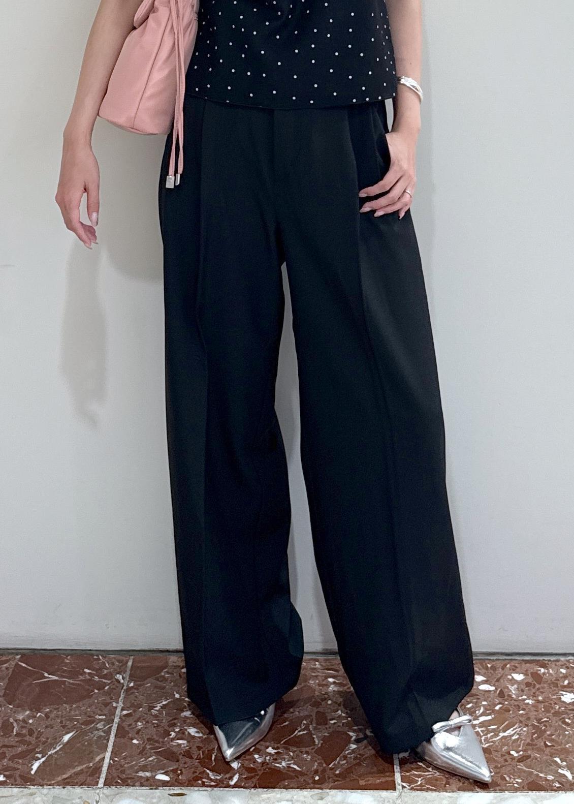 VIS【新色追加】【防シワ/接触冷感】ベルトディテールタックワイドスラックスパンツブラック / M¥6,589レビュー164cmMサイズ着用。くるぶしが隠れる丈感です。