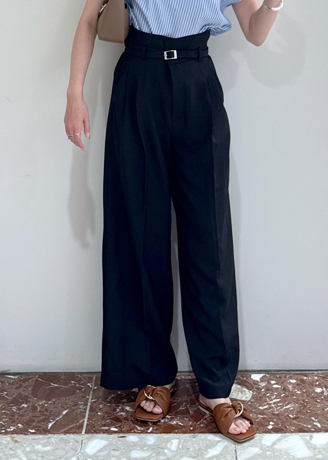 VIS【新色追加】【防シワ/接触冷感】ベルトディテールタックワイドスラックスパンツブラック / M¥6,589レビュー164cmMサイズ着用。くるぶしが隠れる丈感です。