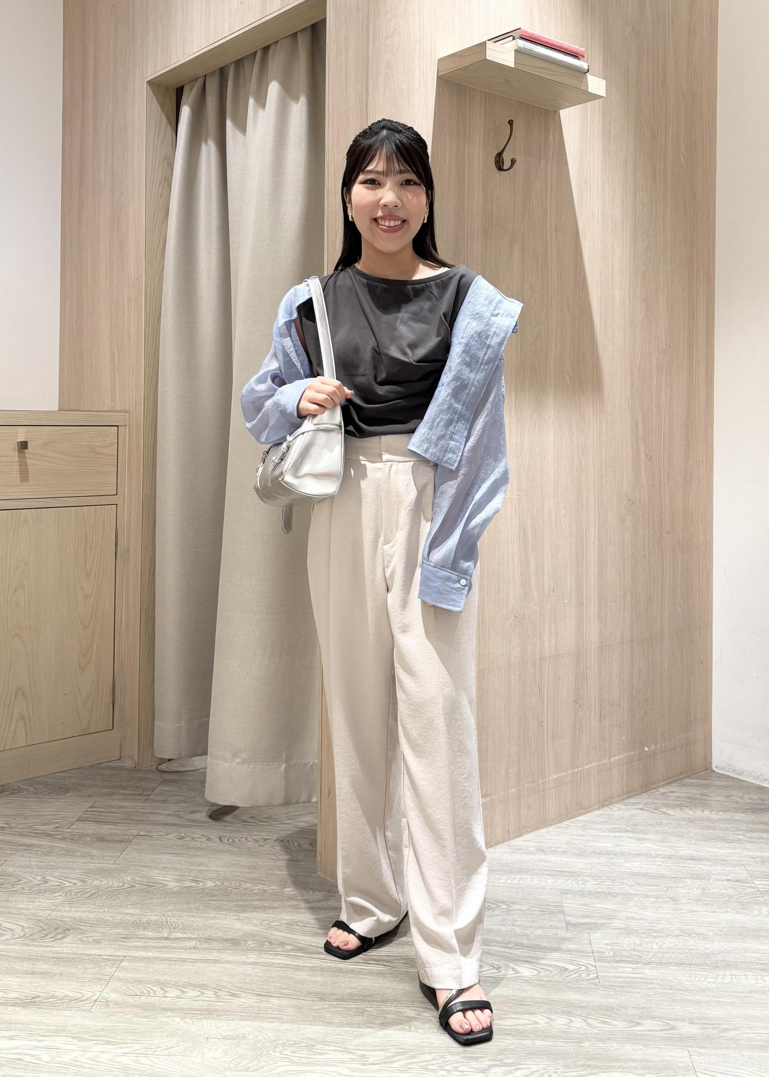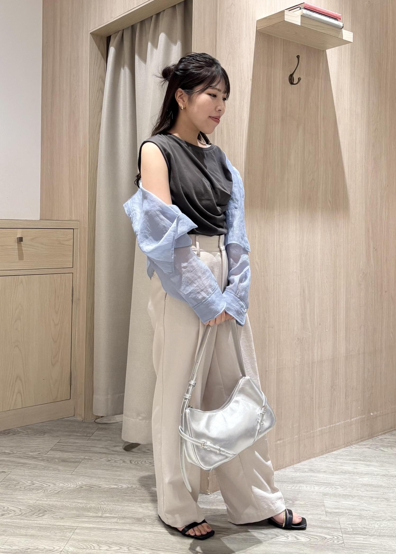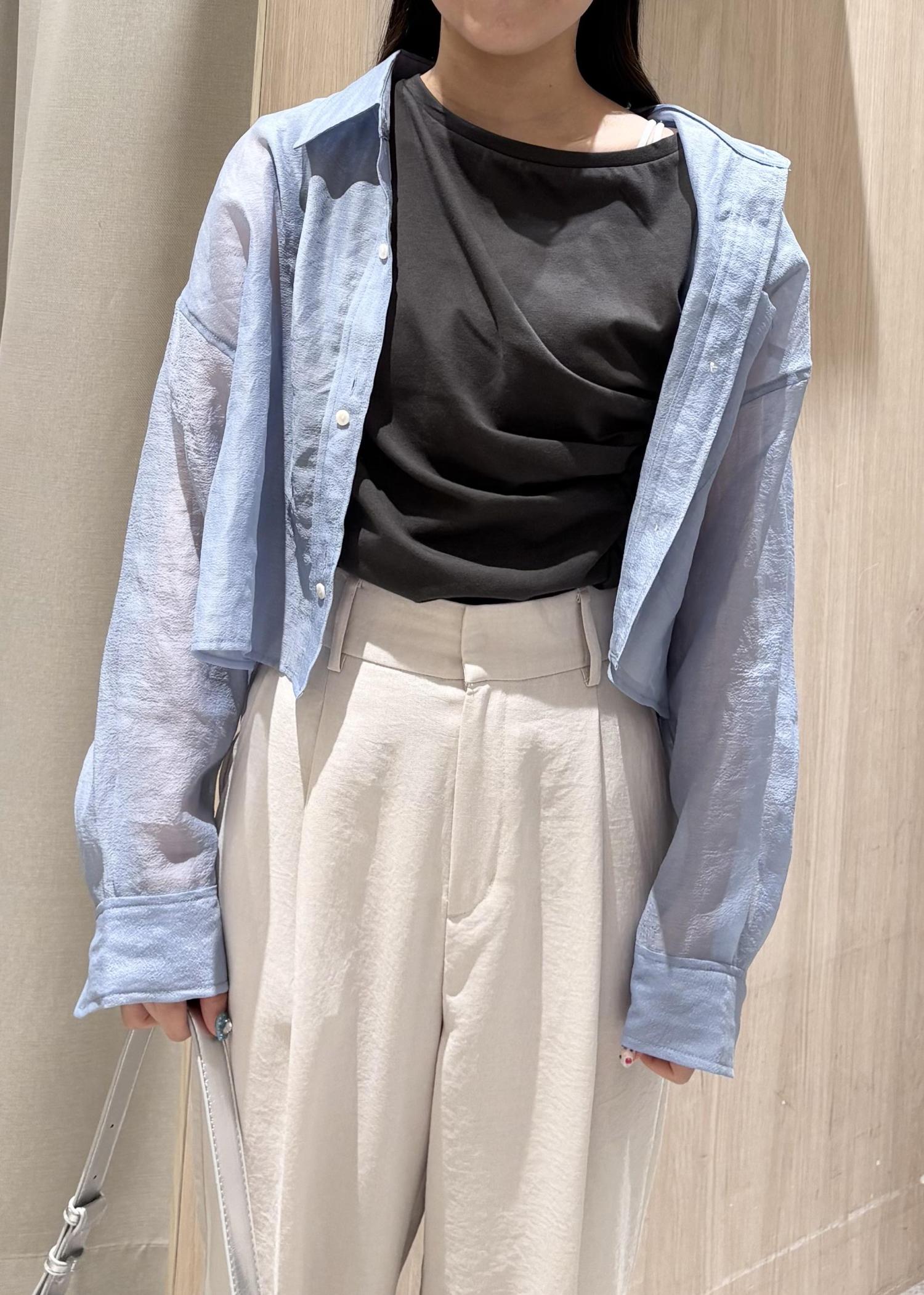 フロントのギャザーがアクセントになって一枚でオシャレ見えしますよ! -