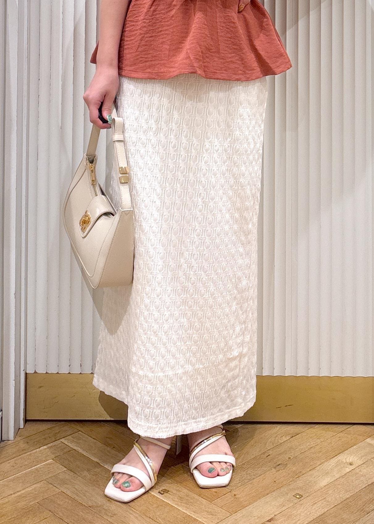 アウトレットVIS【新色追加】【接触冷感】膨れジャガードナロースカートオフホワイト / F¥3,293レビュー153センチ着用で長めのマキシ丈でした。
