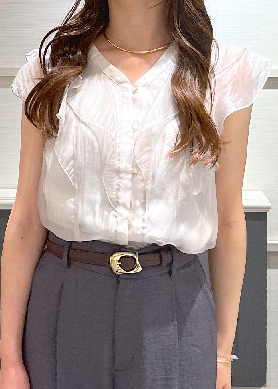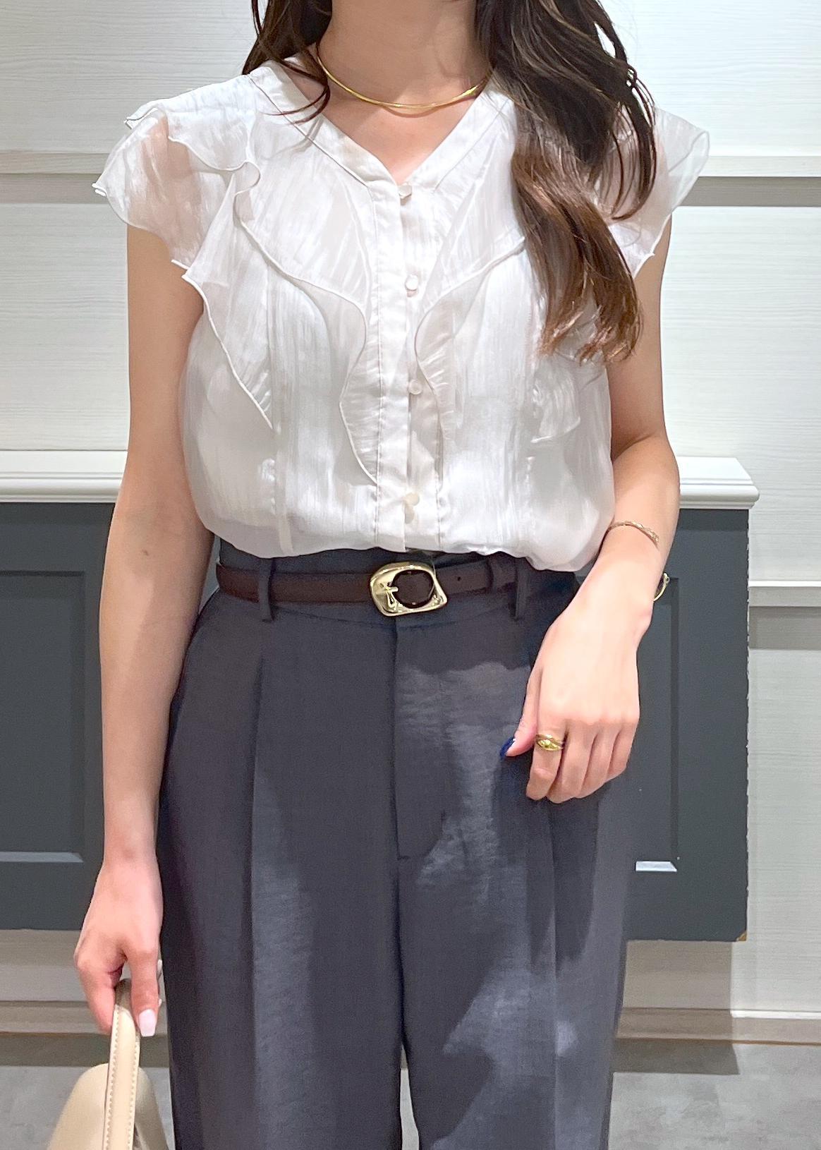 アウトレットVISシアーラッフルフリルブラウス/通勤対応ベージュ / F¥3,842レビュー156cmで腰が隠れる丈感なのでインもアウトもしやすかったです!