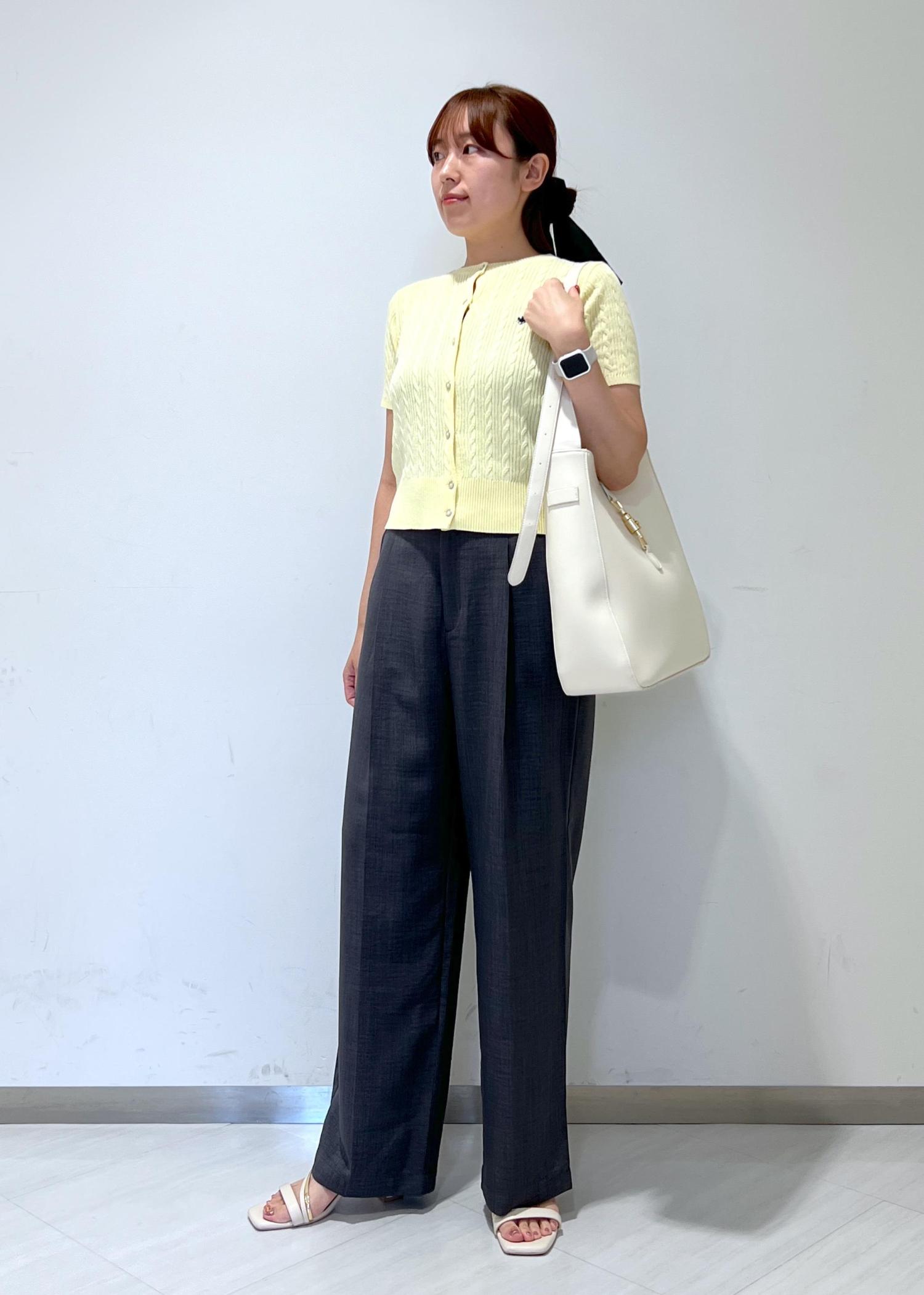 VIS【POLO BCS】VIS別注ハーフスリーブミニケーブルカーディガンイエロー / F¥6,600レビュー長過ぎず短過ぎない丈感なのでコーディネートを組みやすいです!ボタンを開けてインナーにコンパクトなTシャツやキャミソールを合わせてもお洒落です◎