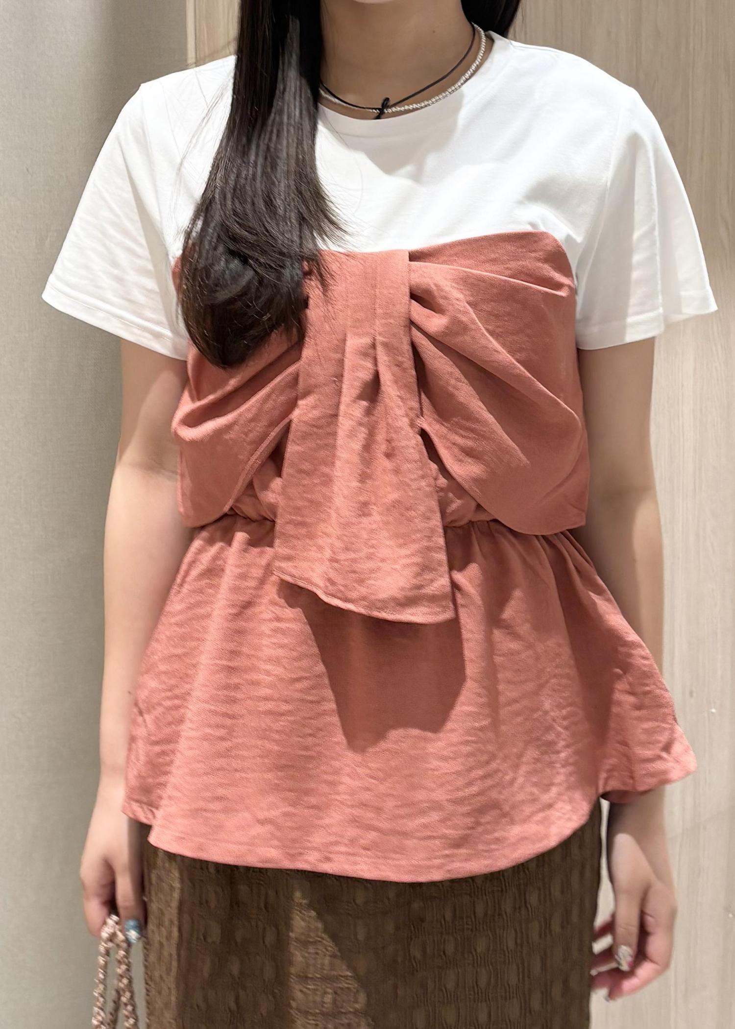 【新色追加】【美easy】ねじりリボンTシャツドッキングプルオーバー【接触冷感/洗える】