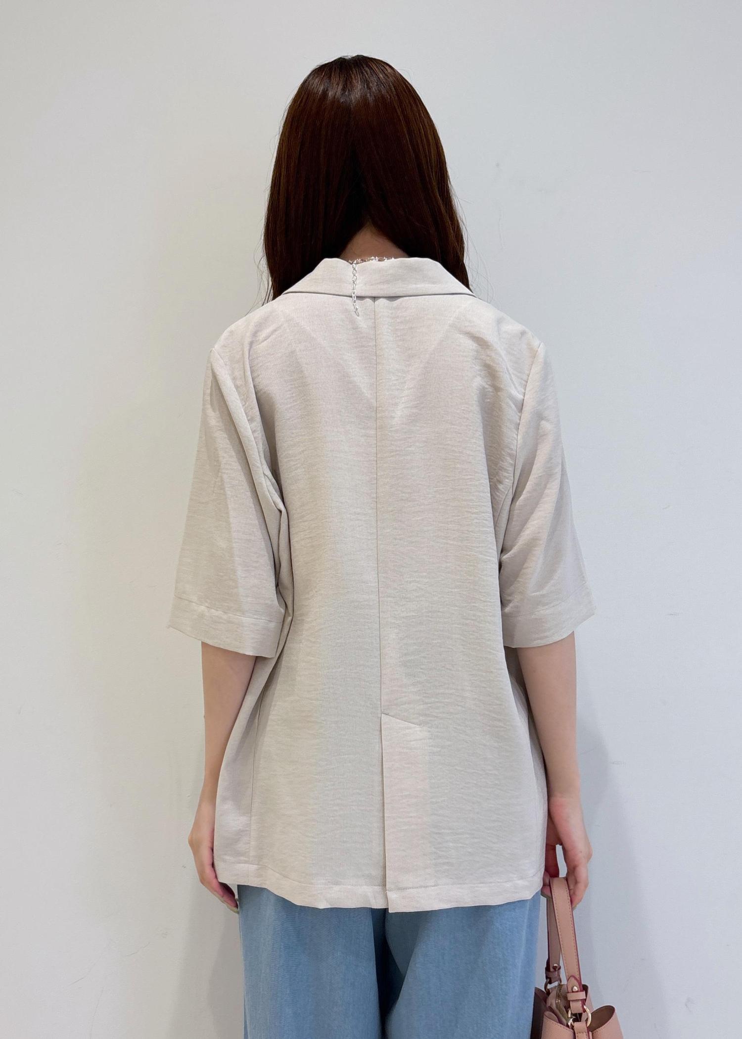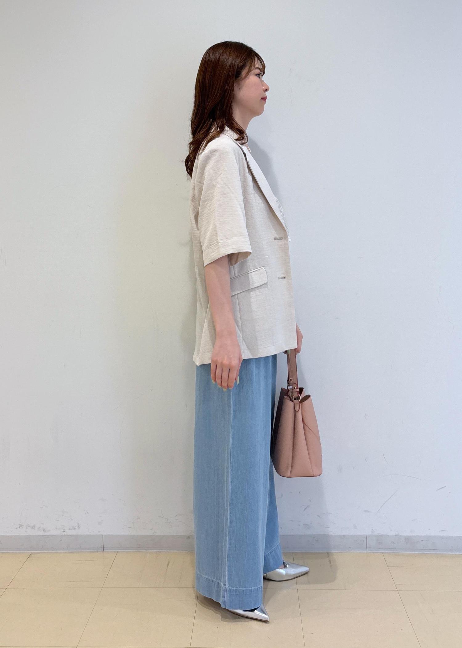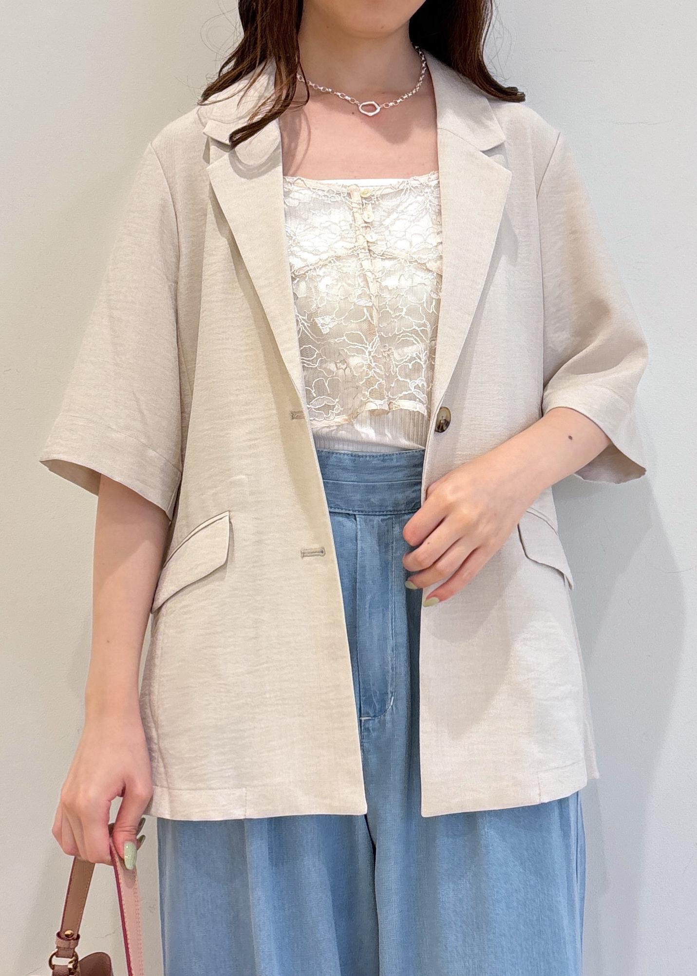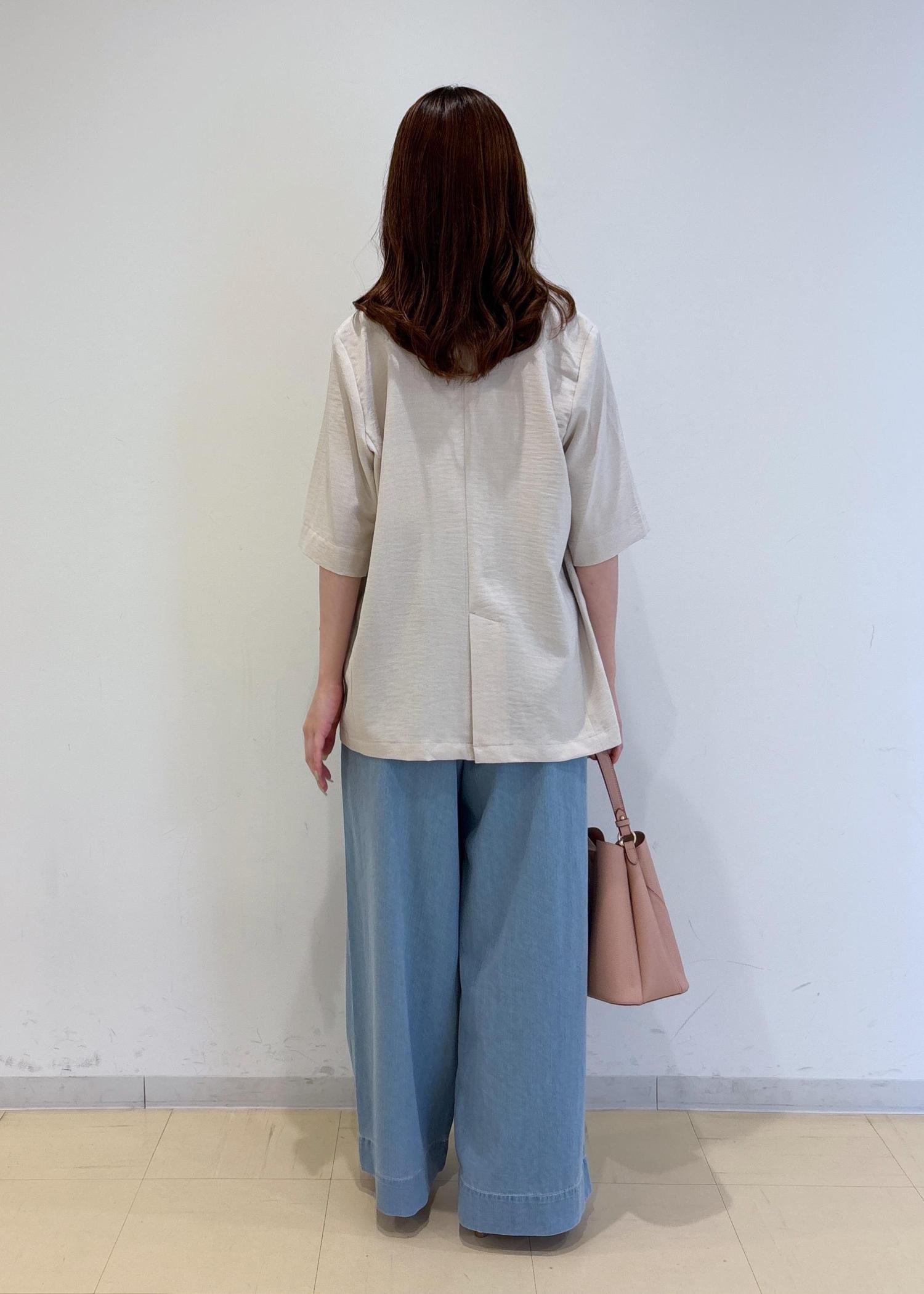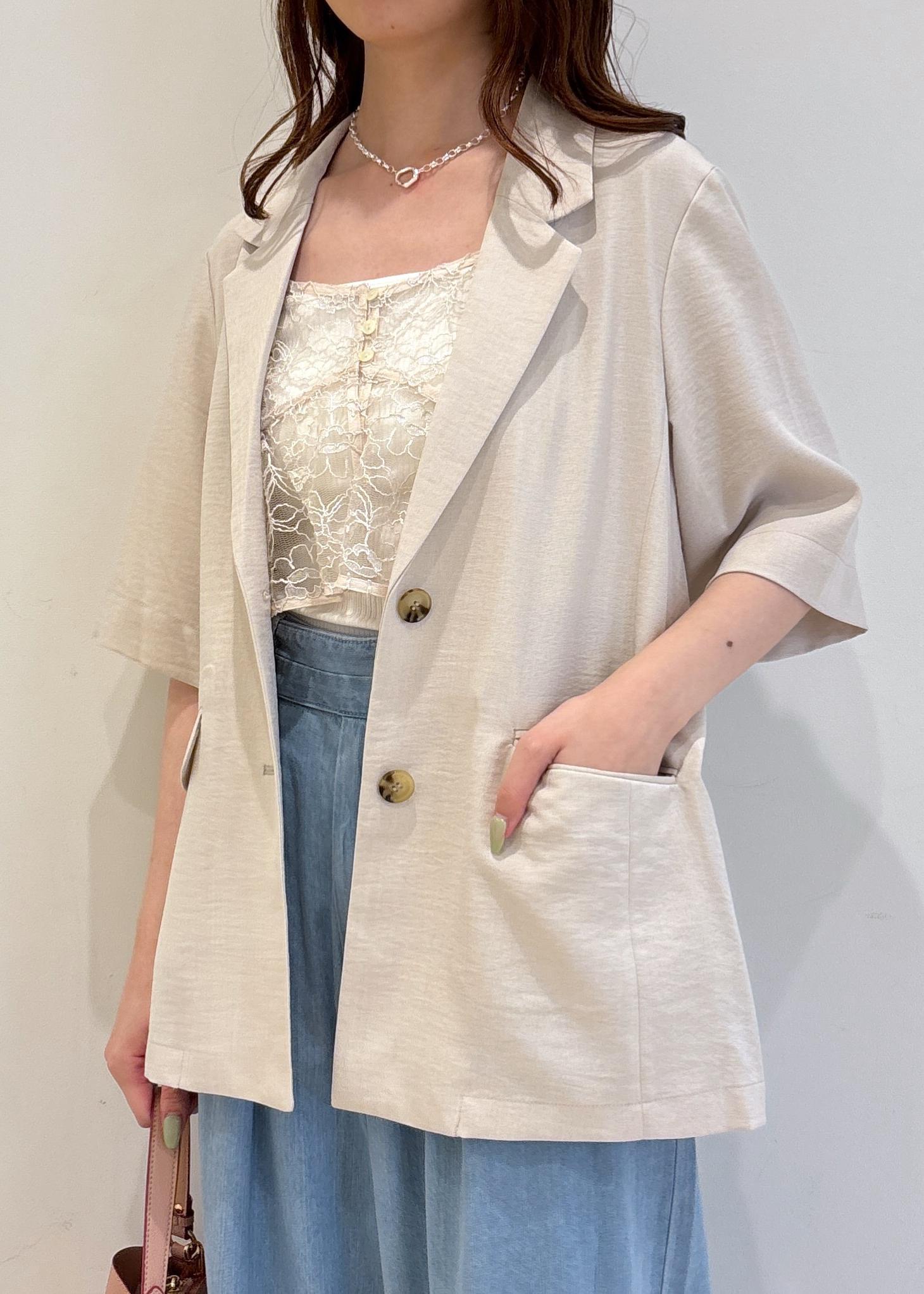 VIS【美easy】ハーフスリーブジャケット/セットアップ対応・洗えるキナリ / M¥7,909レビュー163センチでMサイズ着用。お尻が隠れる丈感でした。