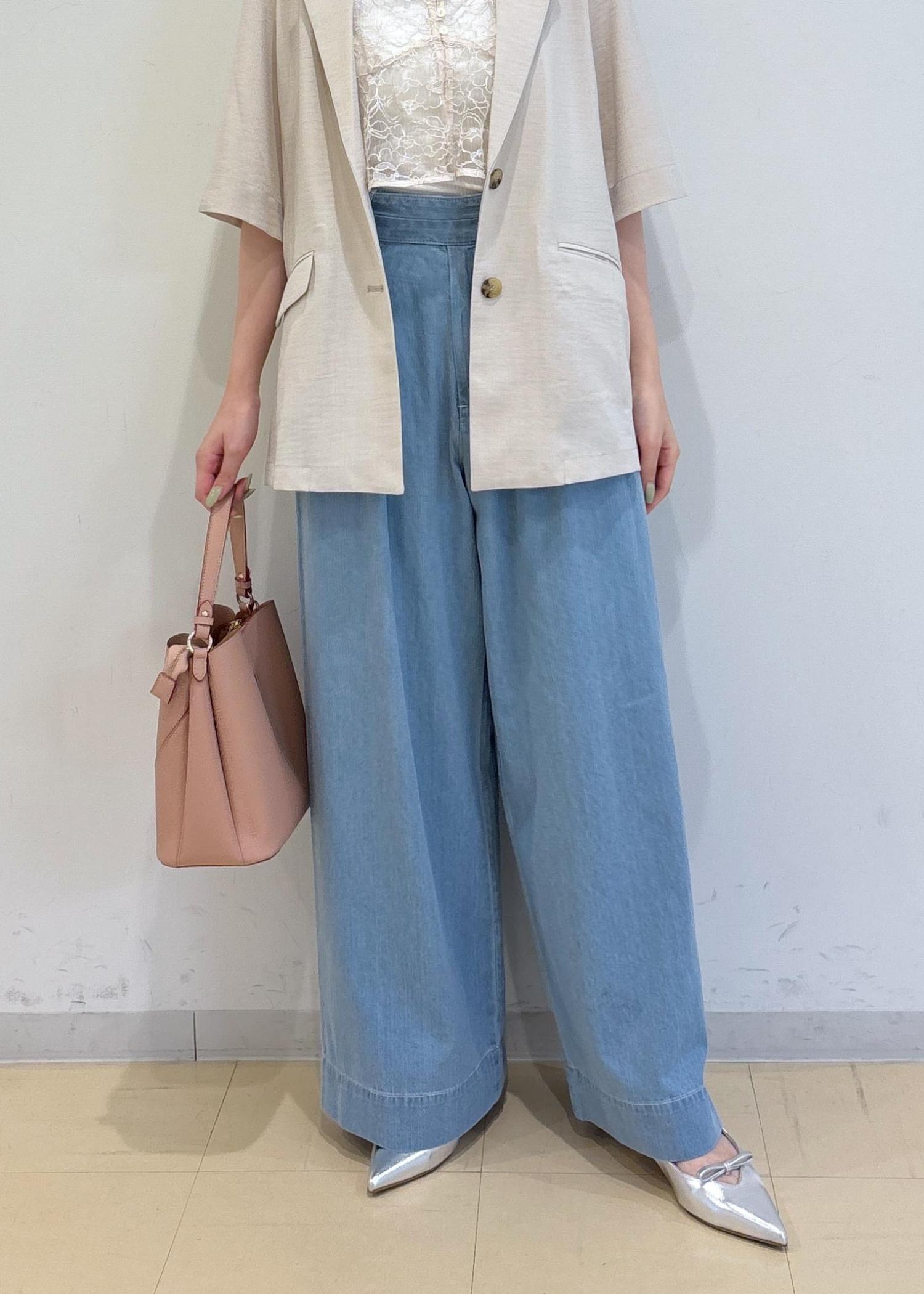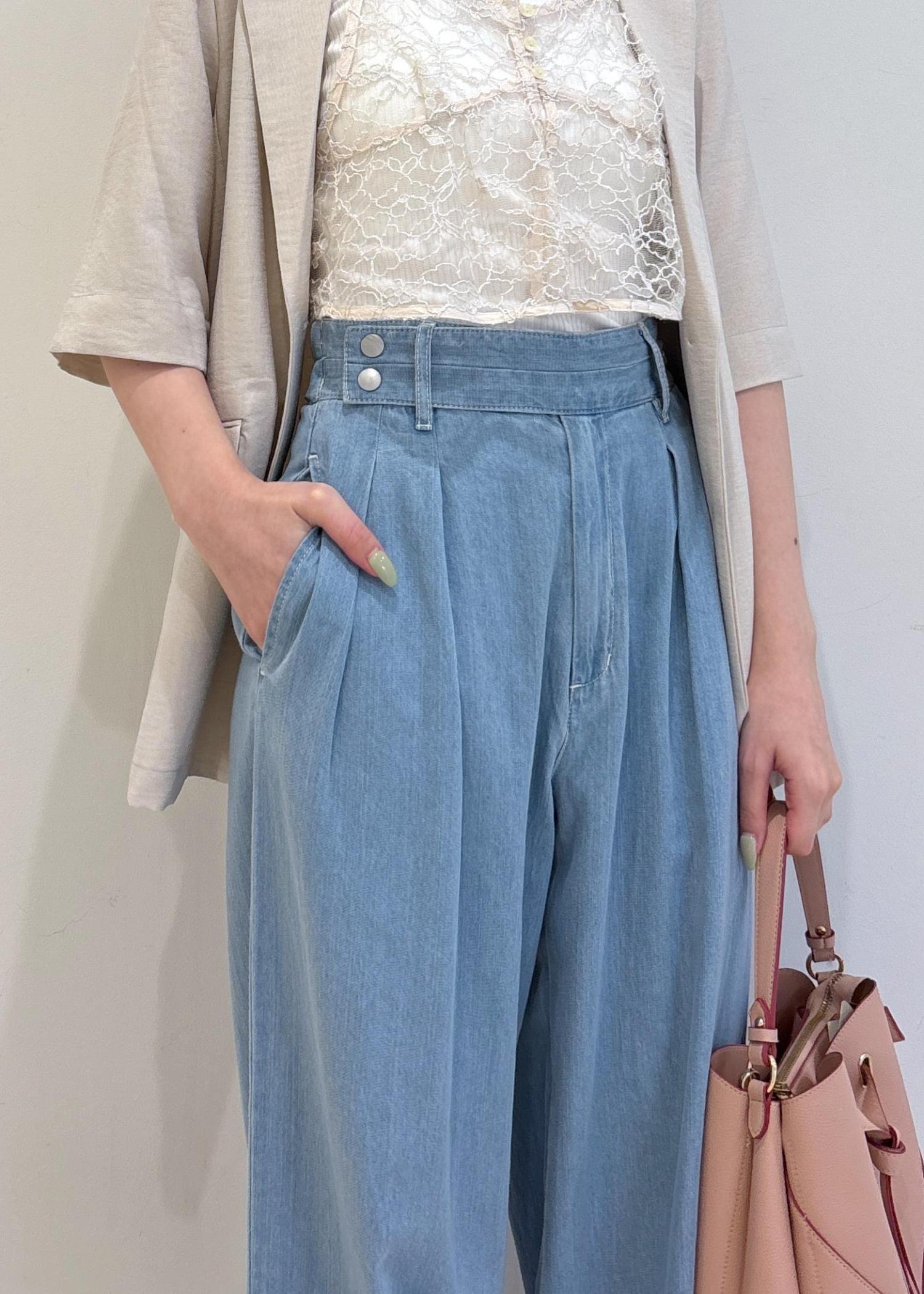 薄手の生地感で柔らかいので夏にも履きやすいデニムです。 -