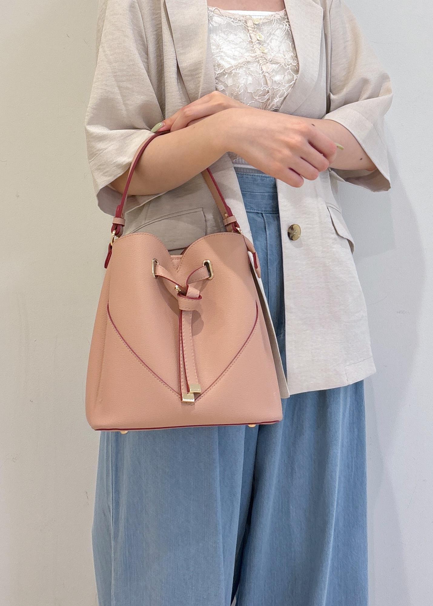差し色でピンクのハートバッグを合わせて可愛さもプラスしました。