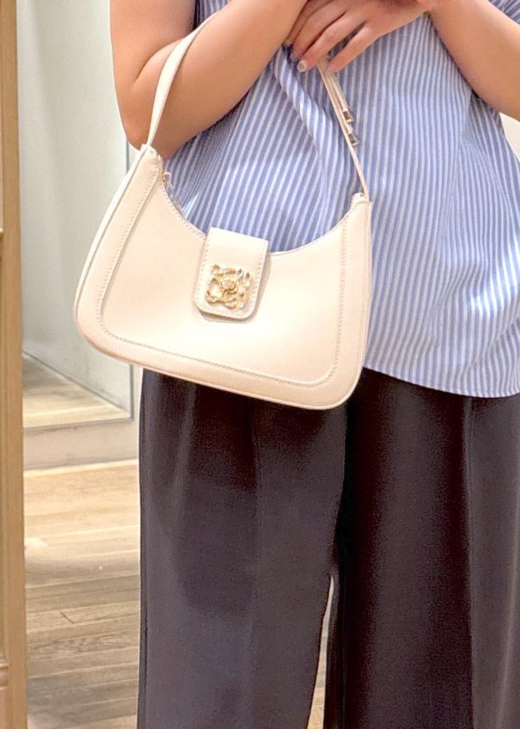 ショルダー部分にリボンが付いていて、肩にかけてもおしゃれに見えます。