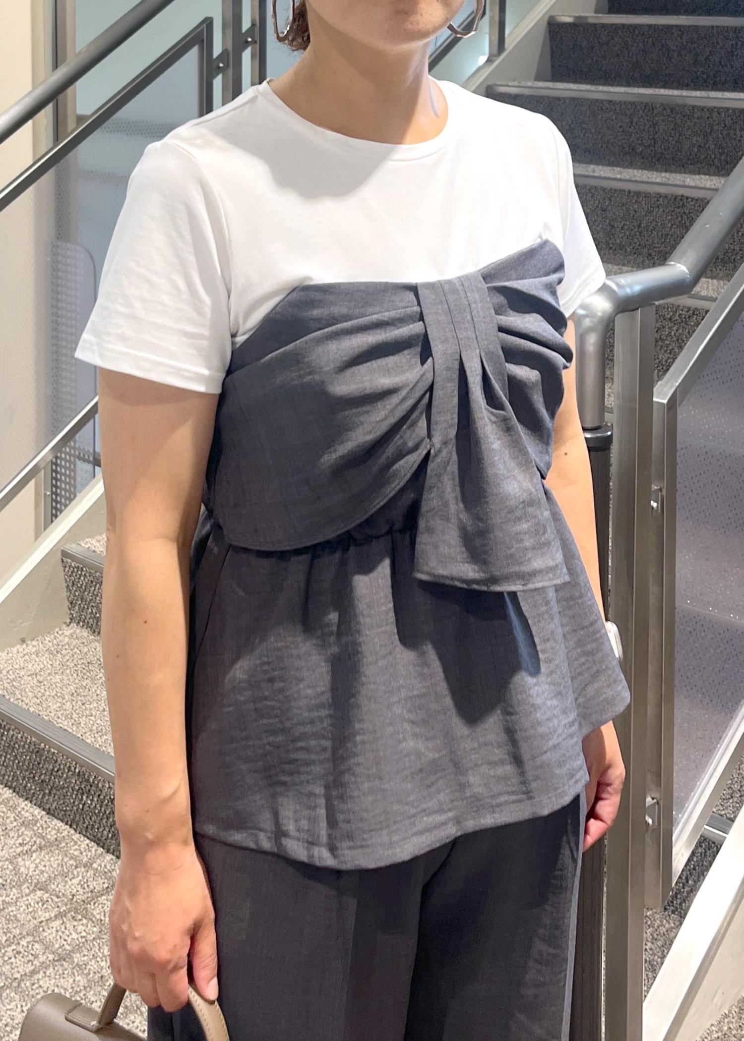 VIS【新色追加】【美easy】ねじりリボンTシャツドッキングプルオーバー【接触冷感/洗える】チャコール / F¥5,489レビューねじりリボンのデザインで一枚で華やかに見せられます。
