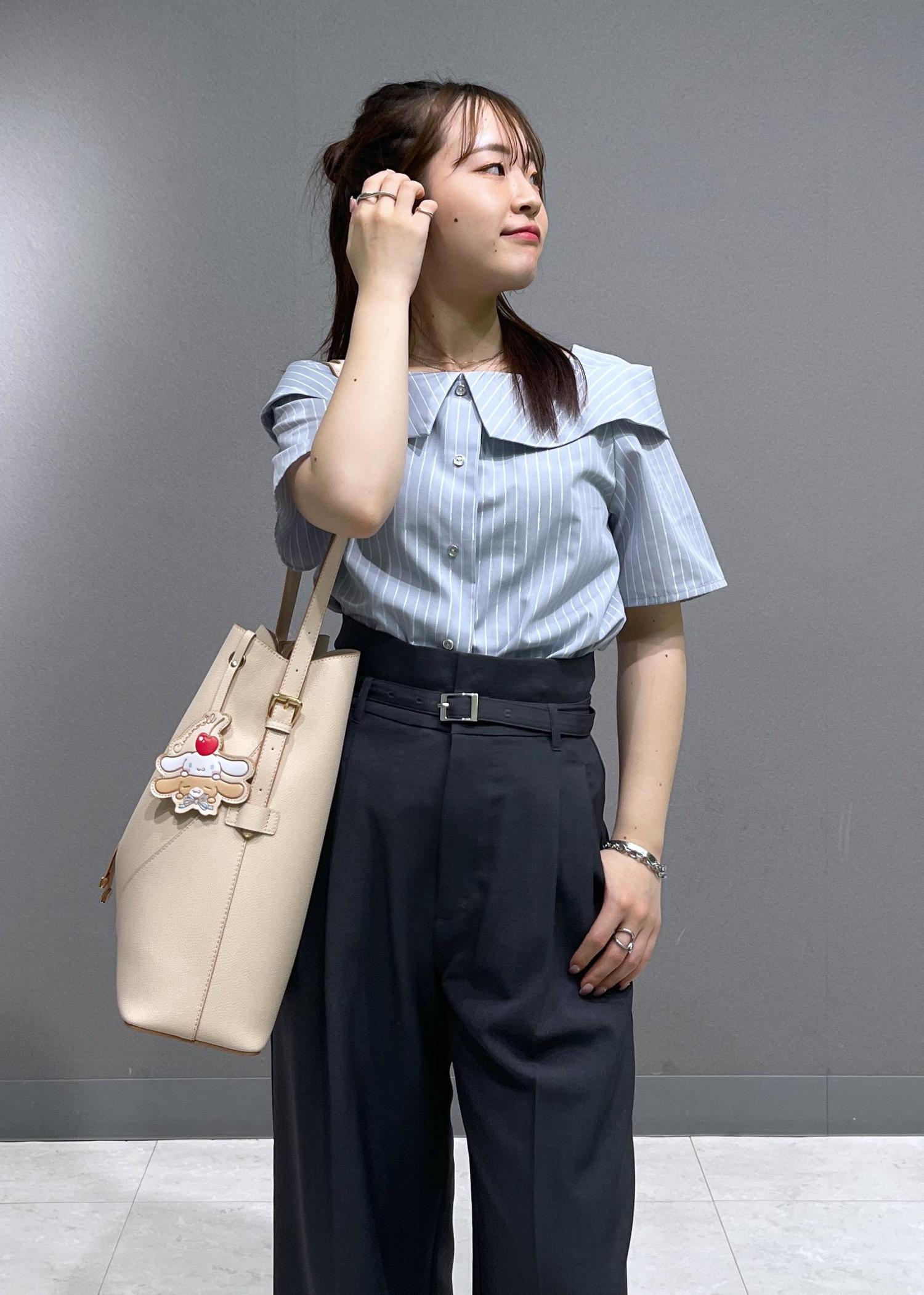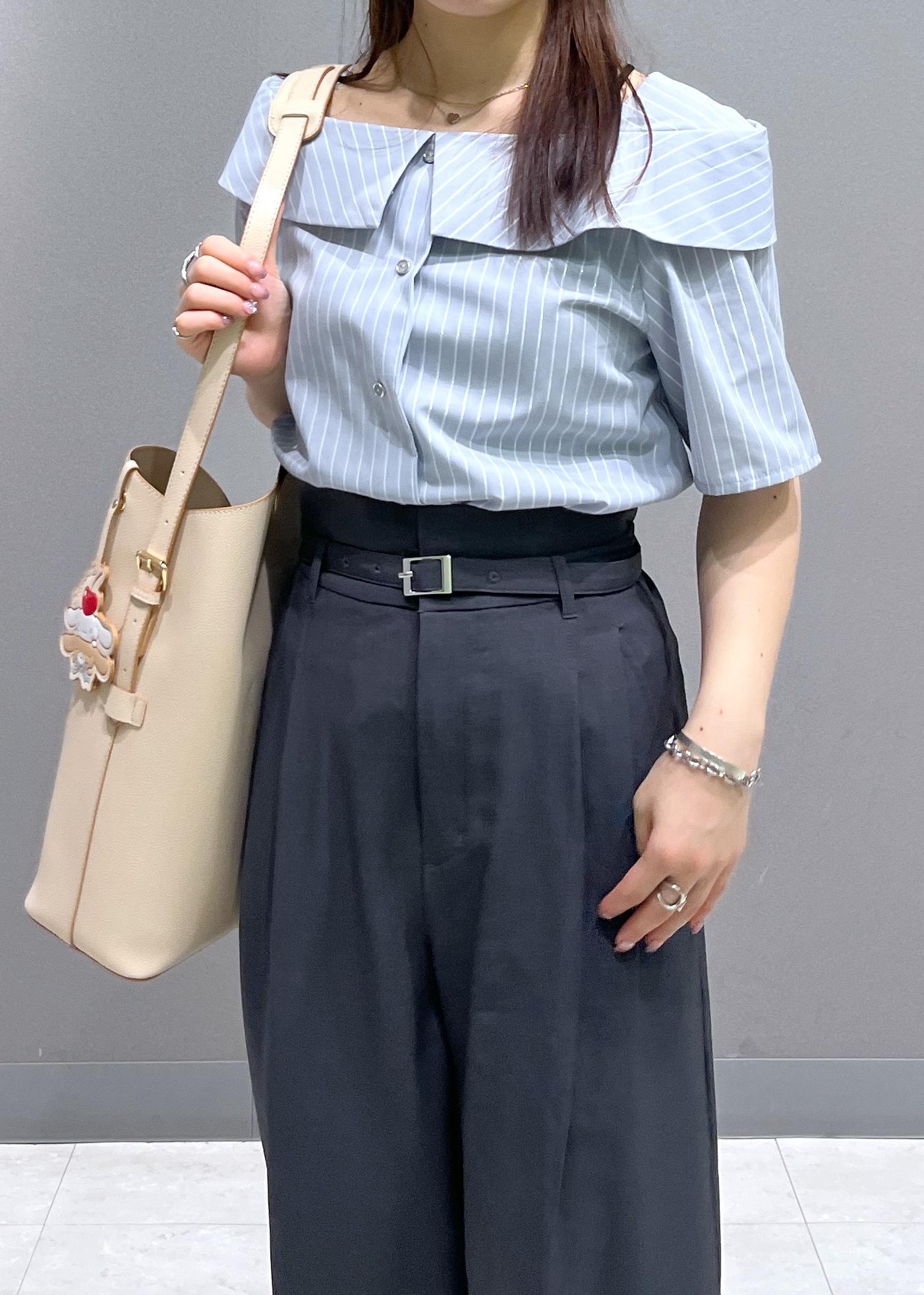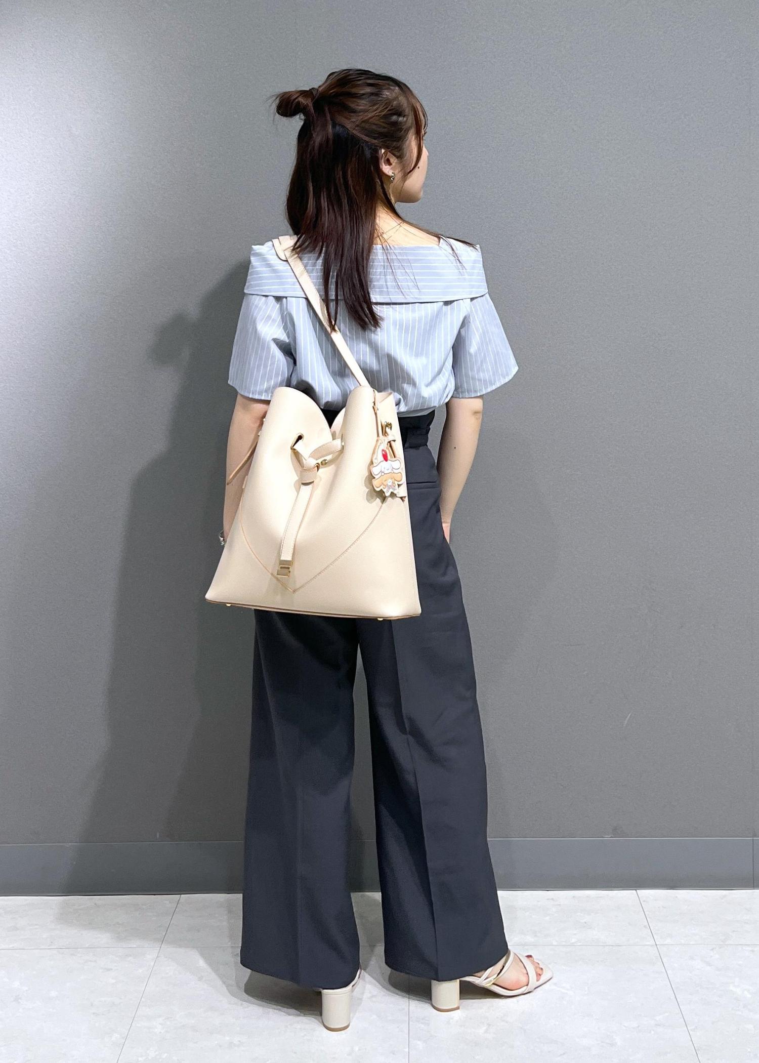 紐部分がアシンメトリーなデザインになるので、デコルテ周りがあいているトップスを着ても可愛いなと思いました☺︎ -