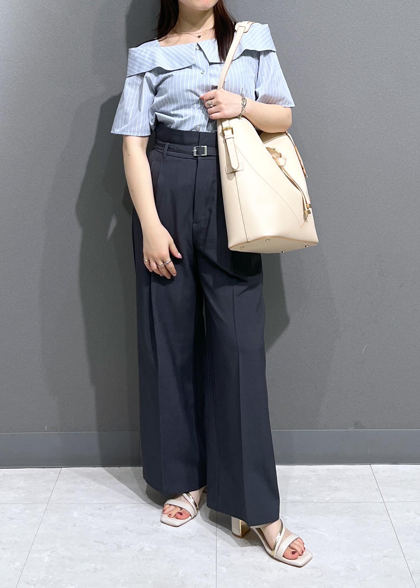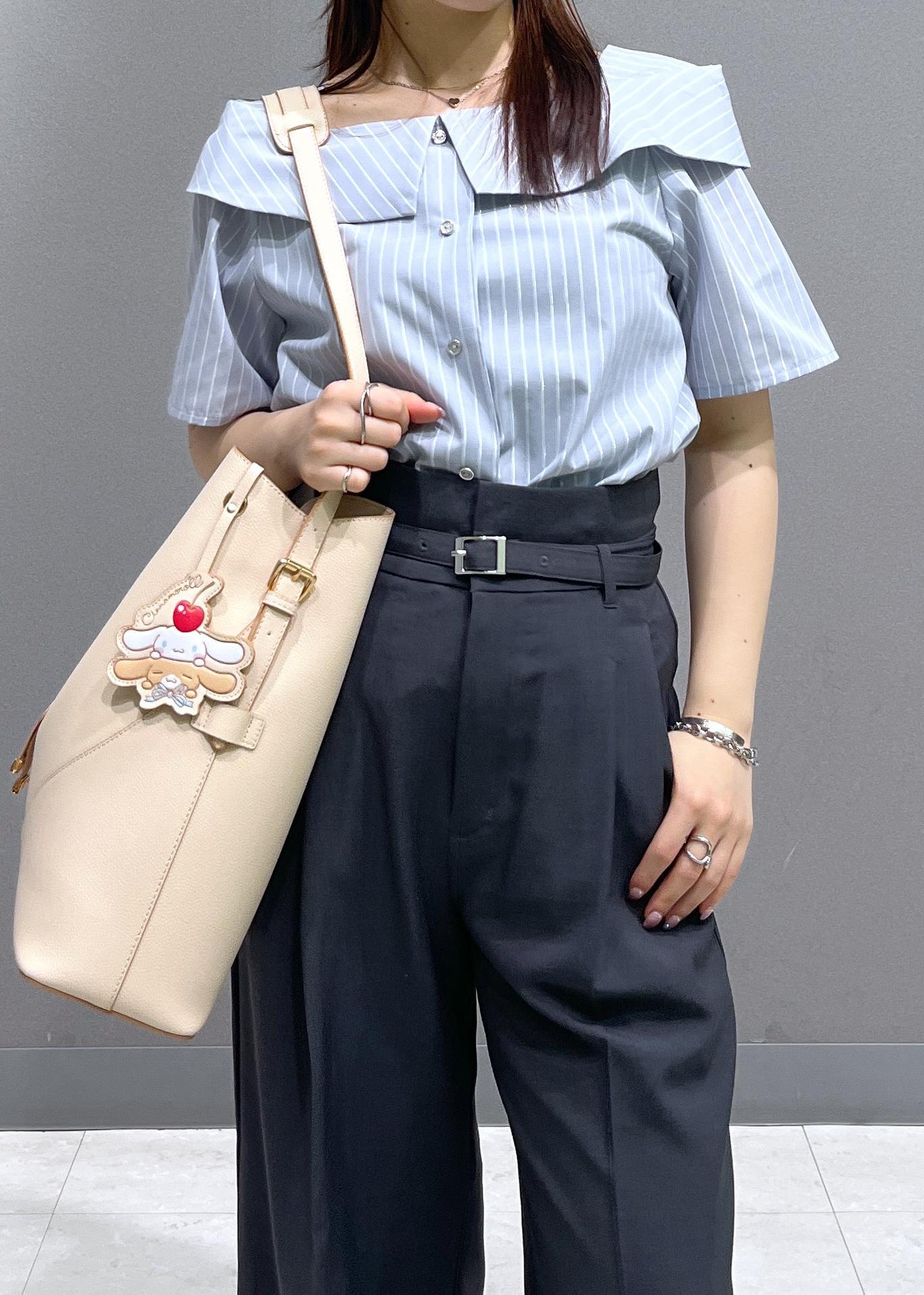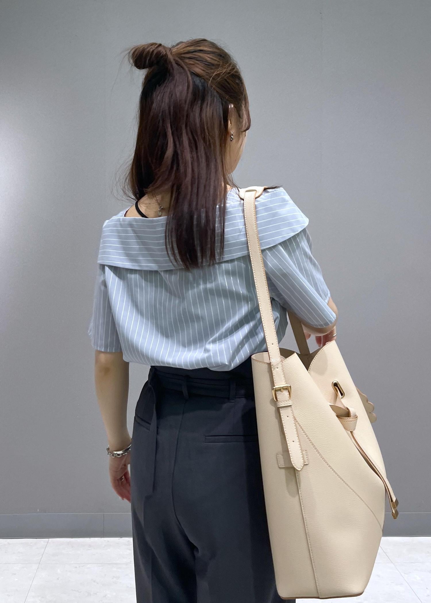 紐部分がアシンメトリーなデザインになるので、デコルテ周りがあいているトップスを着ても可愛いなと思いました☺︎ -