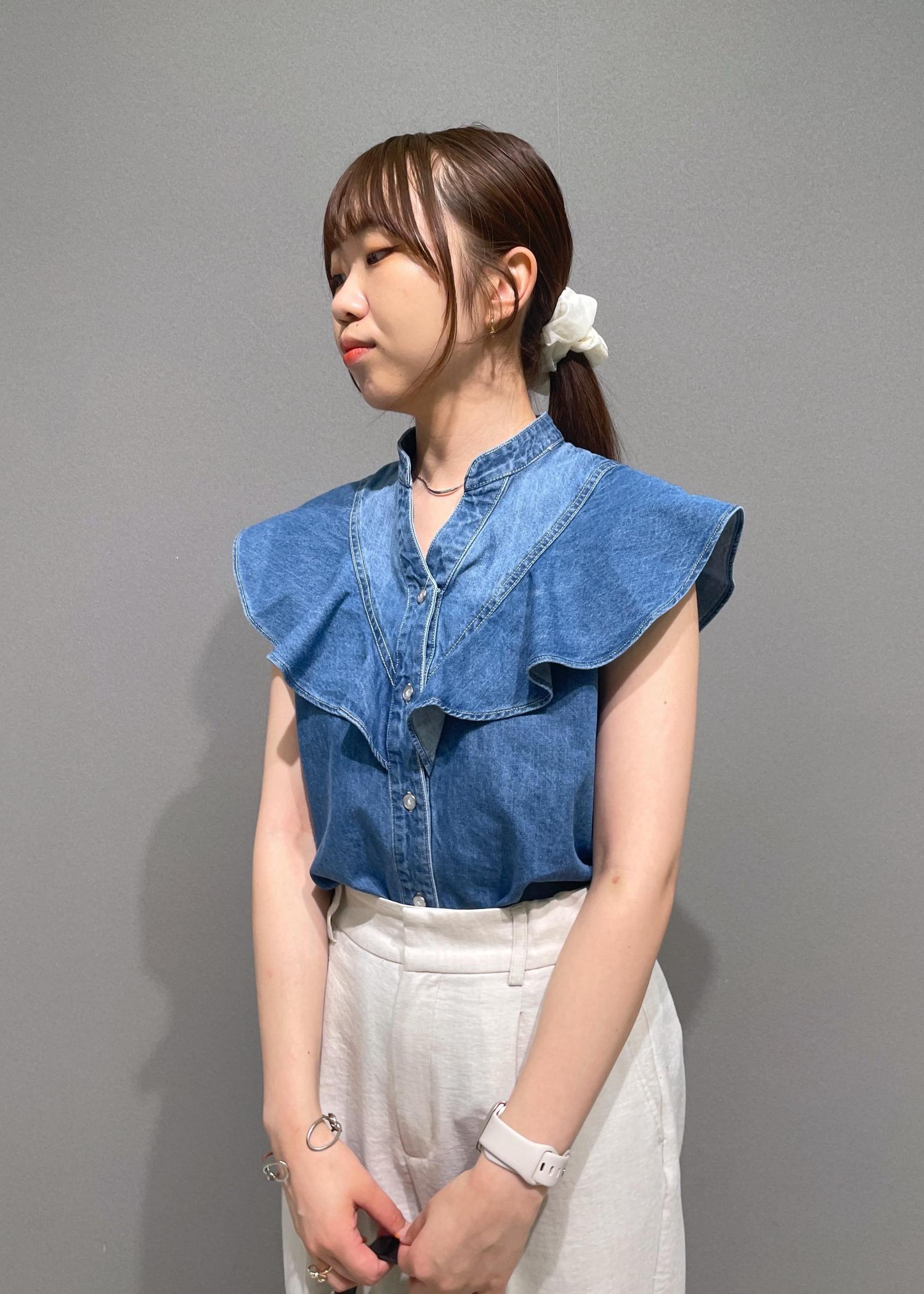 VIS【UVケア/洗える】ラッフルデザインデニムブラウスブルー系 / F¥3,953レビューラッフルデザインが可愛いブラウスです♡