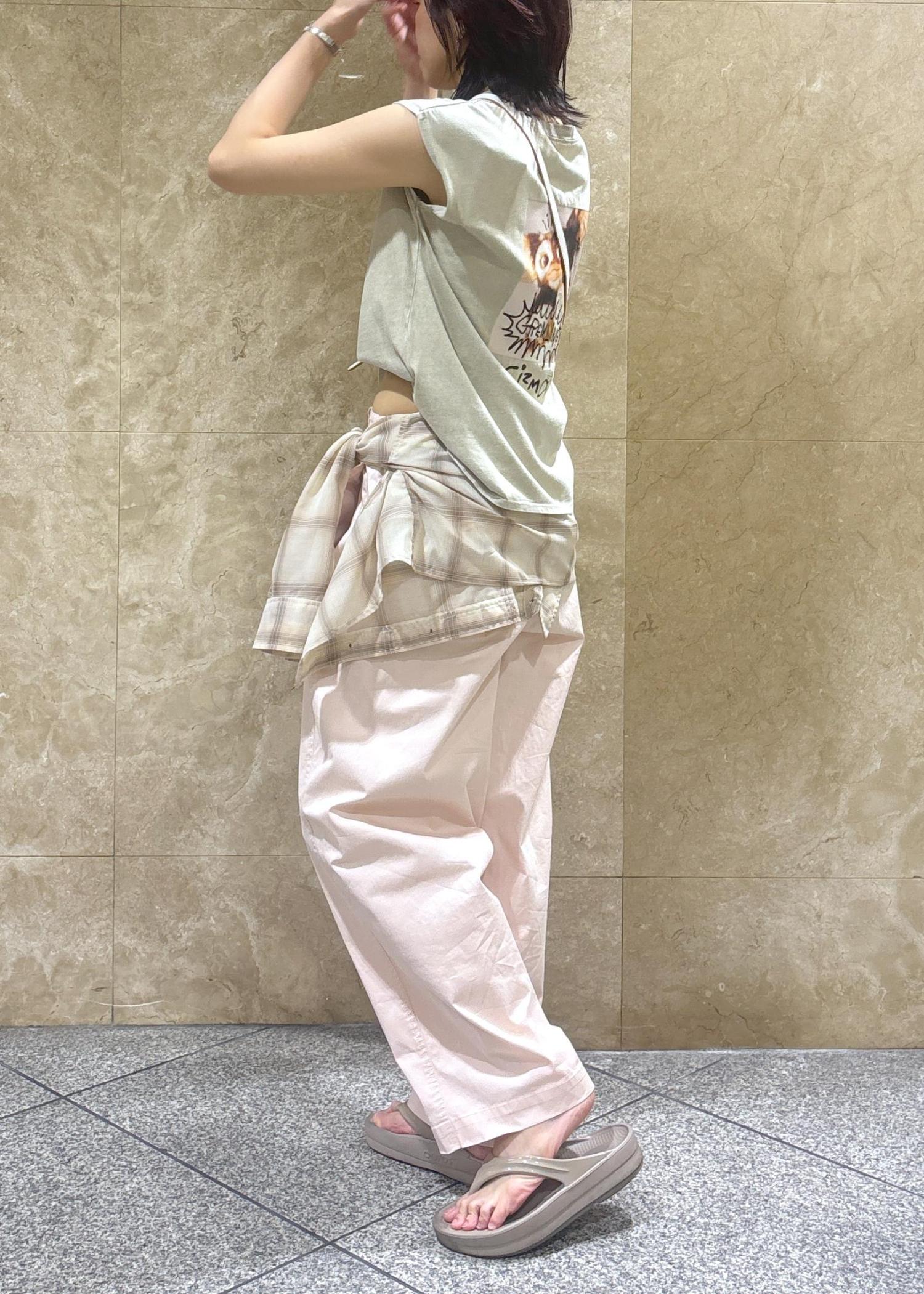 アウトレットVISバレルシルエットコットンパンツピンク / F¥3,460レビューゆるっとしたシルエットとハリのある素材感で脚のラインを拾わないデザイン。