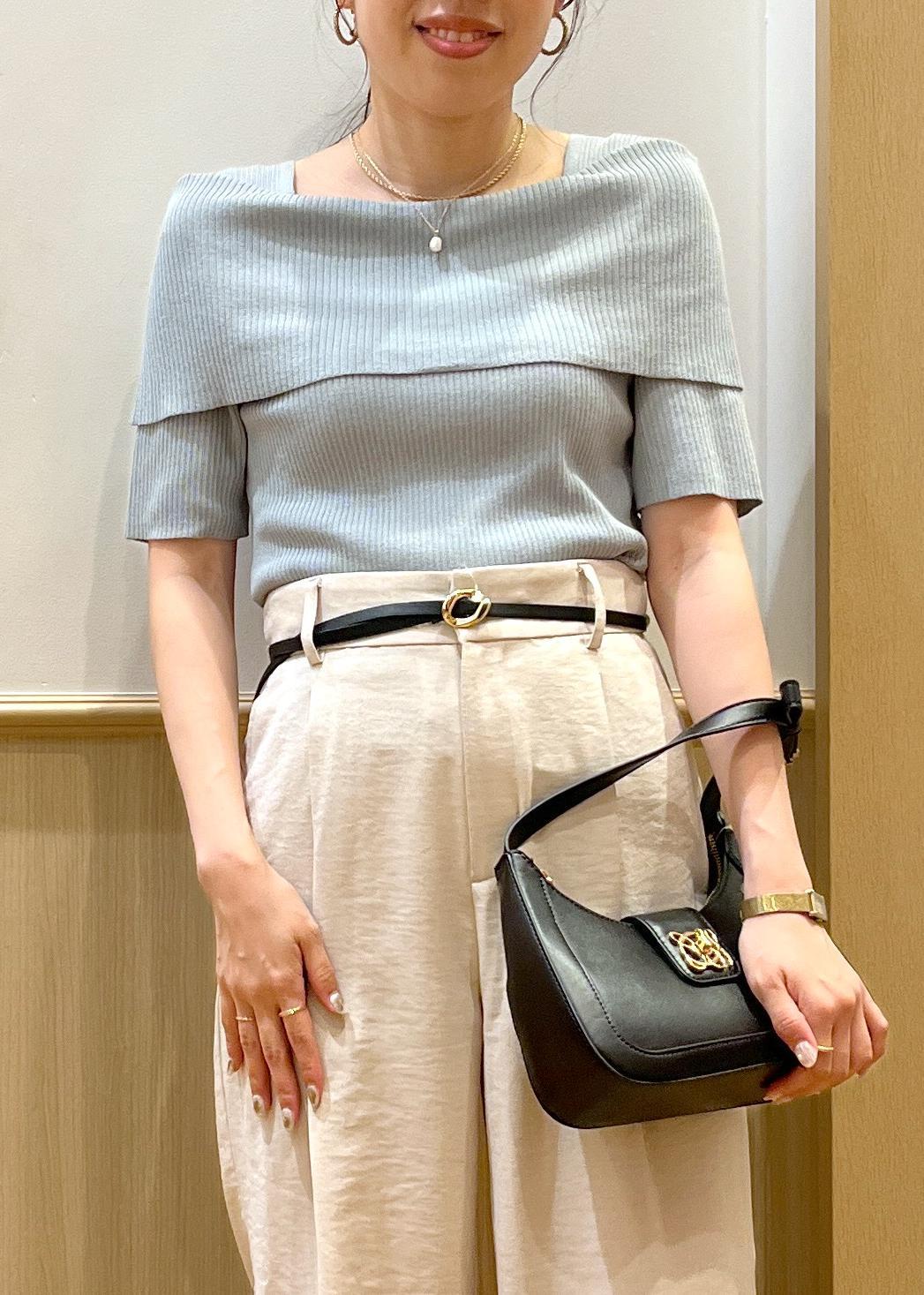 VIS【アンチピリング/UVケア/洗える】オフショルハーフスリーブニットライトグリーン / F¥4,939レビュー即完売したオフショルトップスの
