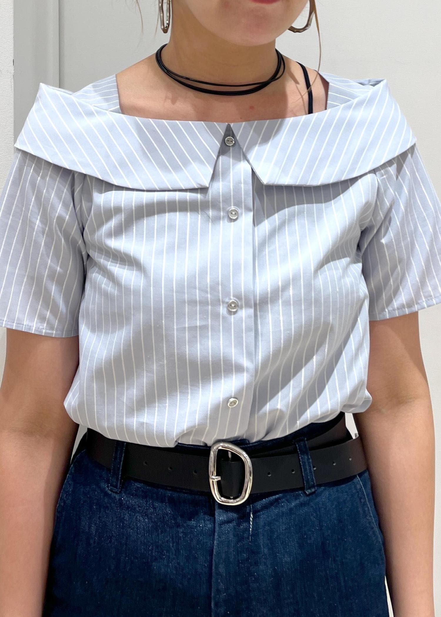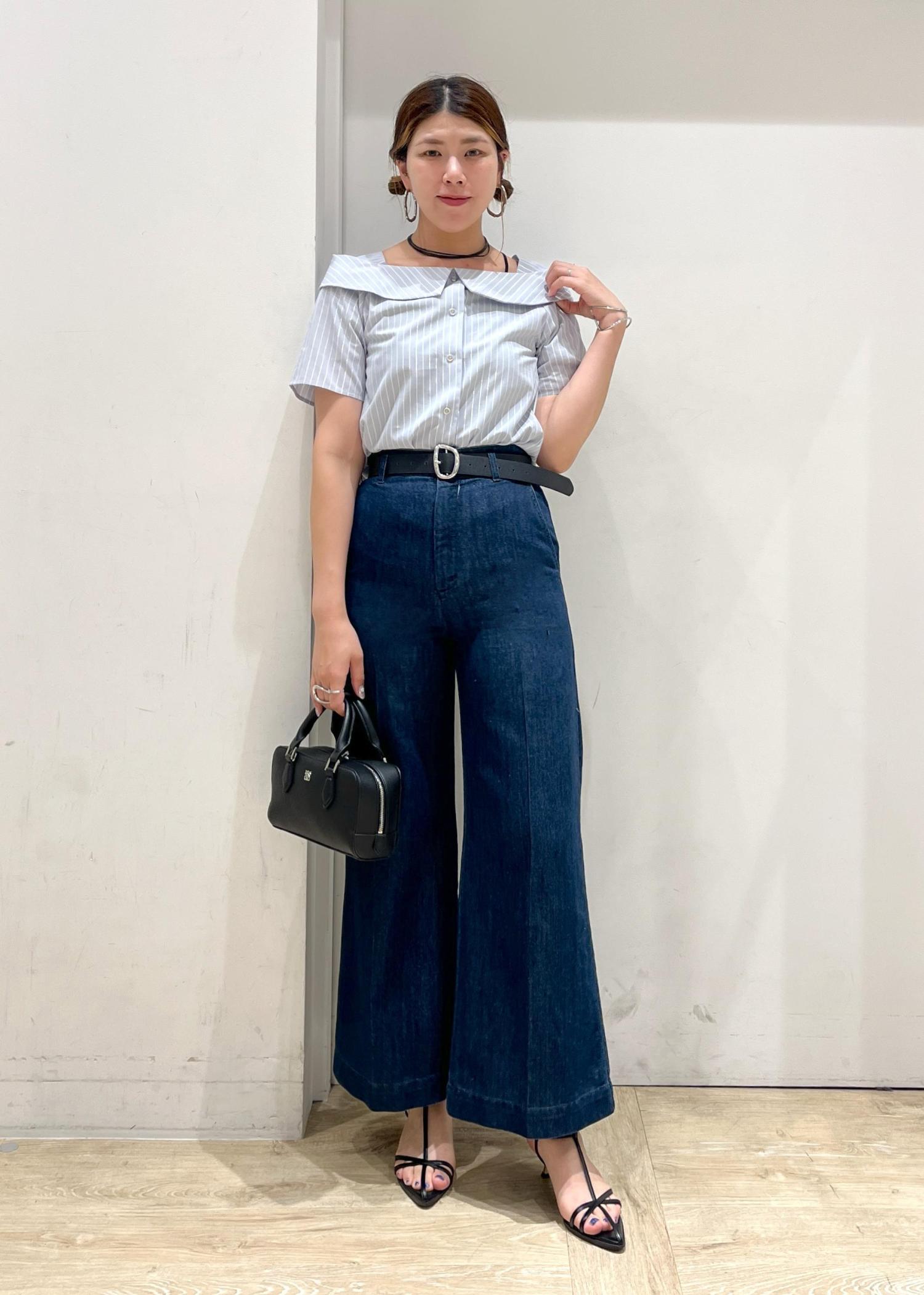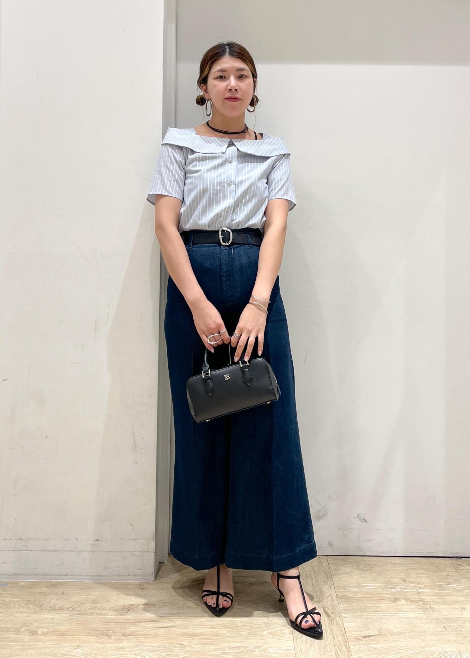 ラメストライプやオフショル風が映えるブラウスはON/OFF着回し力が抜群☺︎