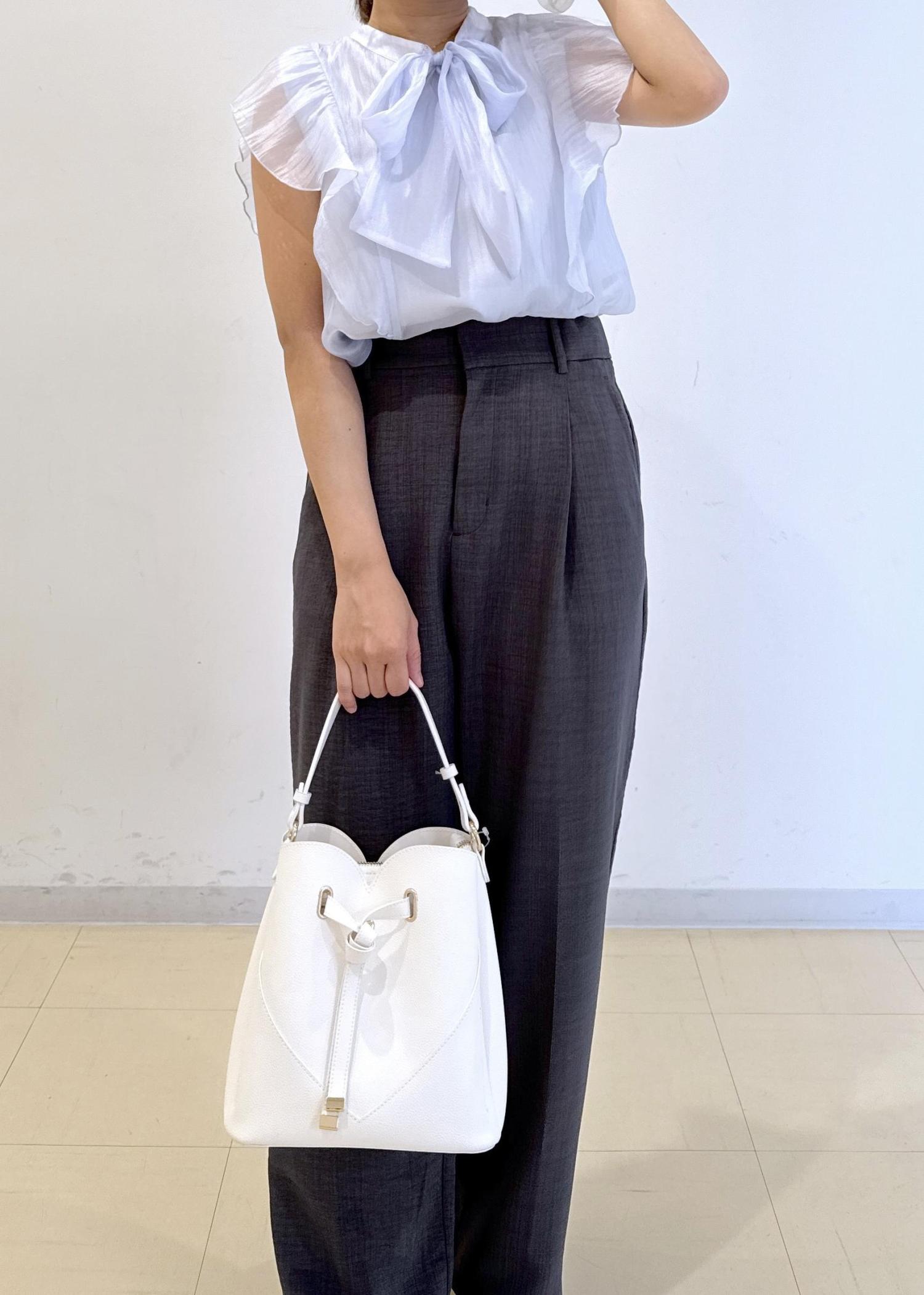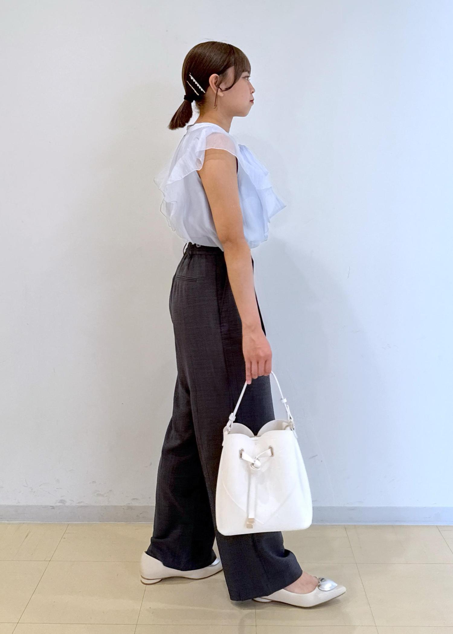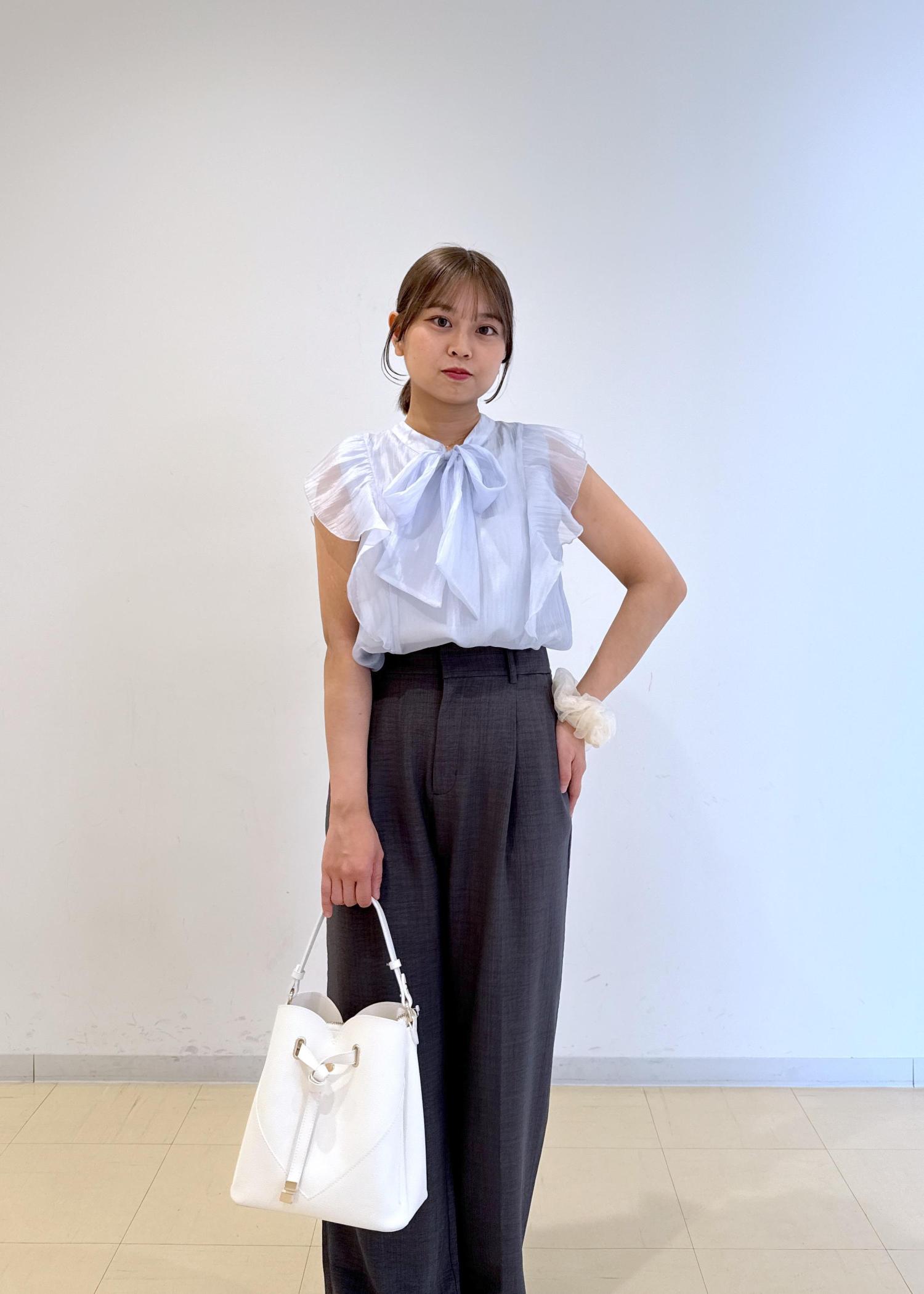 フリルとリボンの甘めのブラウスを使ってオフィスコーデを組みました!