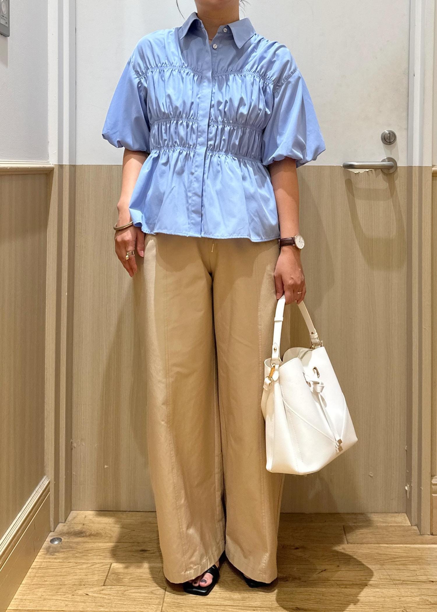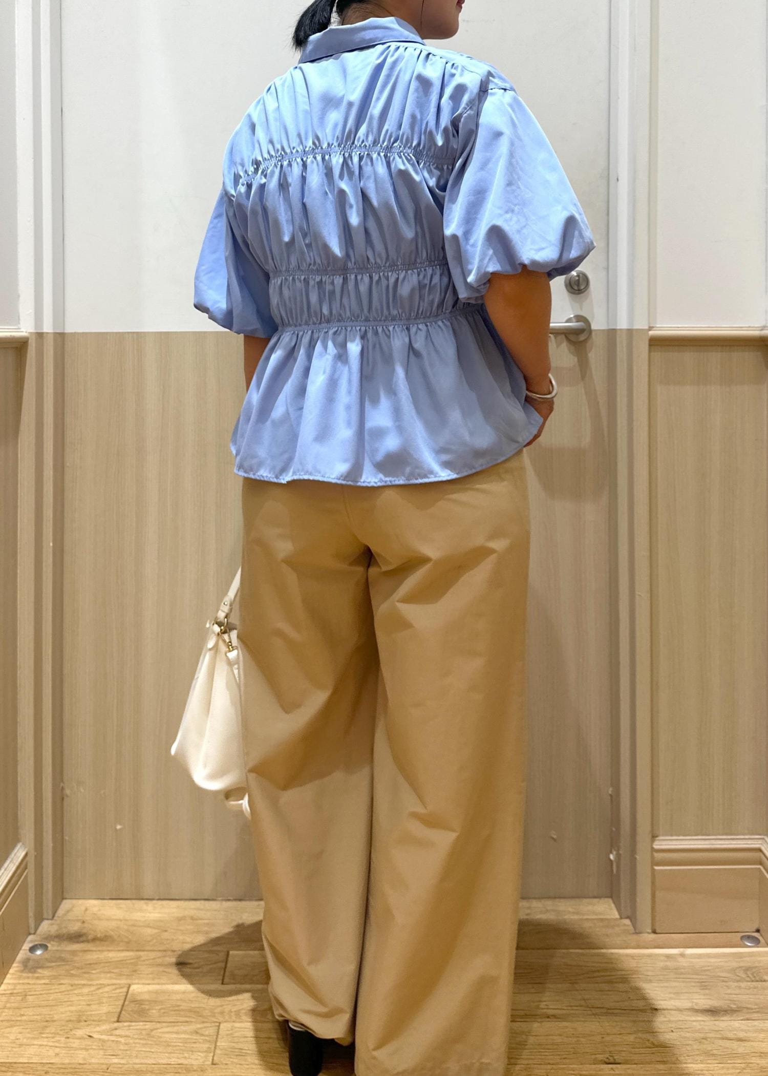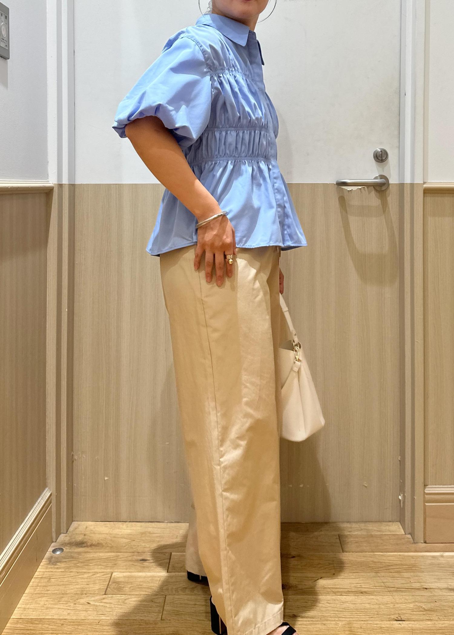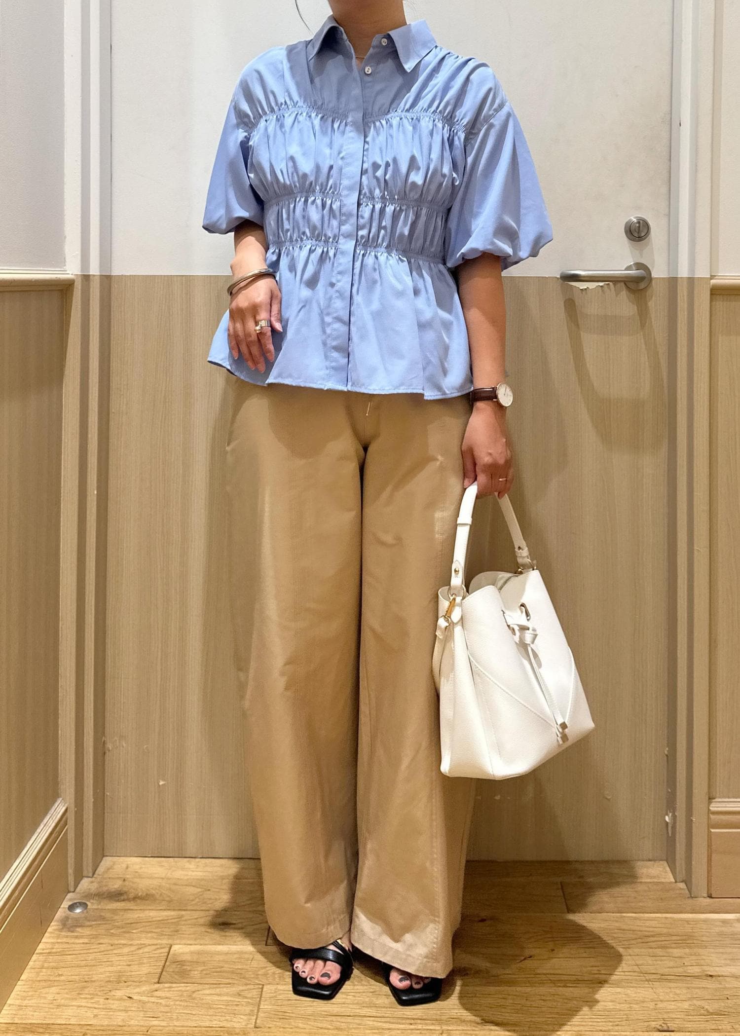 パンツは私もリアルバイしたのですが、少しきれいめに合わせようと思い、大人気のボリューム袖ブラウスを合わせてみました!