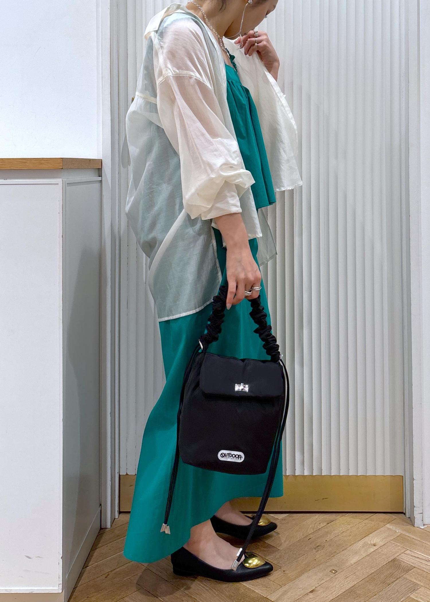 NEW!VISWEB限定追加【OUTDOOR PRODUCTS】VIS別注ドロストミニショルダーバッグブラック / F¥6,930レビュードローコードを絞るとクシュクシュの持ち手になり、肩に掛けるとコーディネートのポイントになります♡コンパクトですが長財布やエコバッグ、ペットボトルも入るサイズ感です。