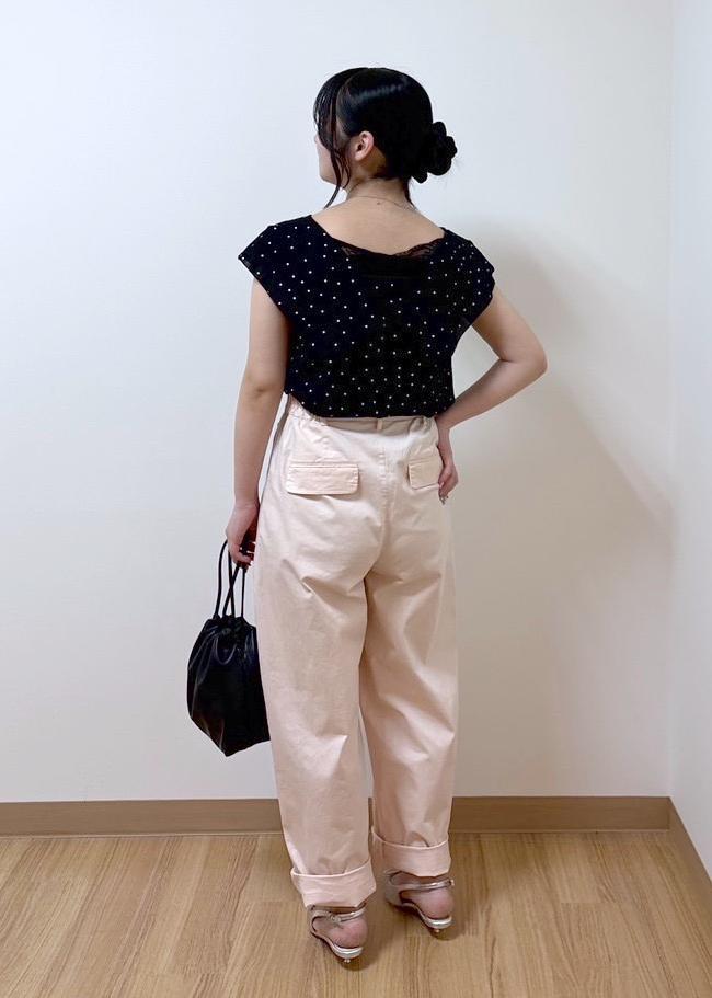ウエストも少し緩めなのでベルトをつけるのがおすすめです!