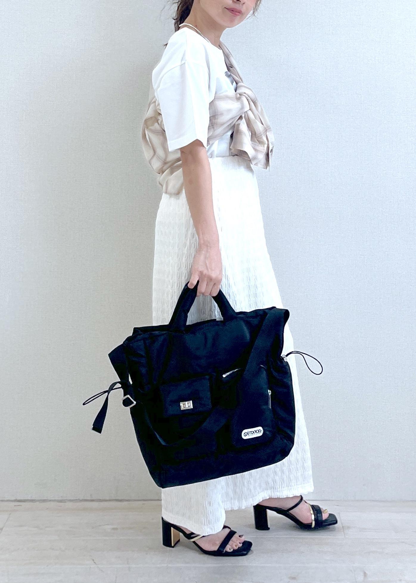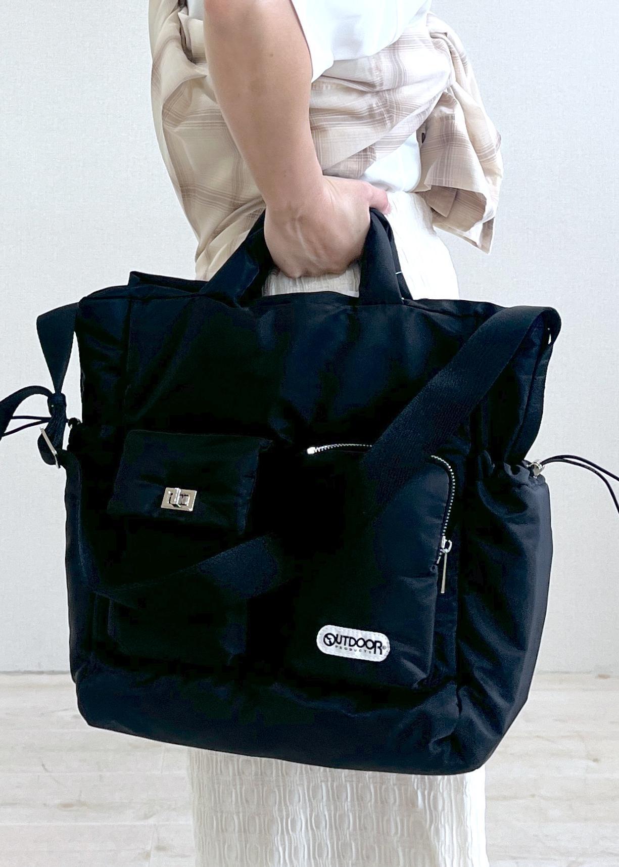 VIS【OUTDOOR PRODUCTS】VIS別注6ポケット2WAYトートバッグブラック / F¥9,680レビューとにかく軽くて大容量!A4サイズの書類もしっかり入れられます。ショルダーも付いているので斜めかけも◎スタイリングによって、カジュアルにもキレイめにも使える万能バッグ!しかもoutdoorとのコラボです♡