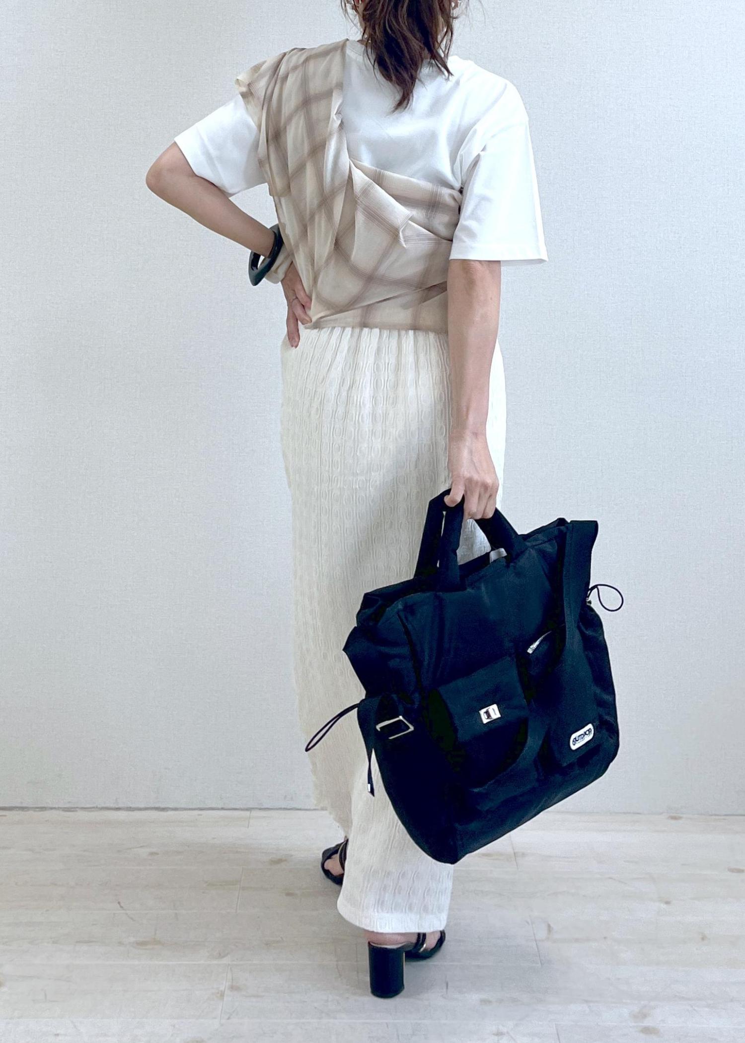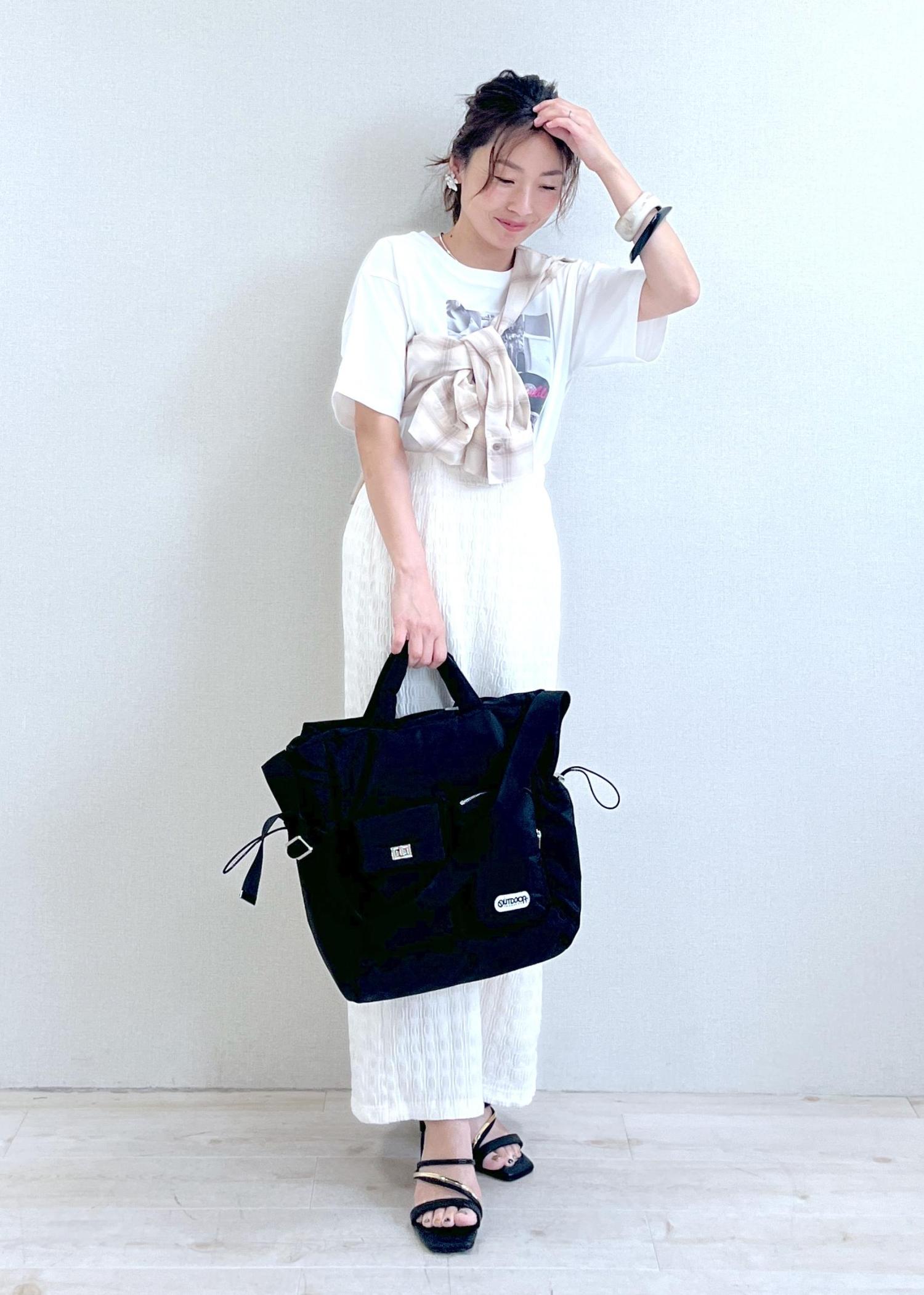 軽やかなホワイトに、ラフすぎない黒小物で引き締め。