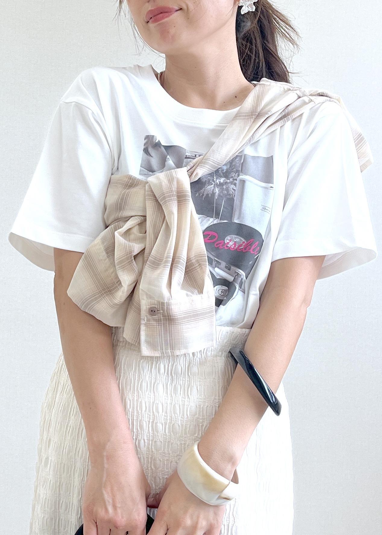 アウトレットVISフォト&ロゴアソートTシャツホワイト系 / F¥1,975レビュー152cmでFサイズ着用して、着丈は腰くらいのやや長めの丈。オーバーサイズのゆるっと着られる楽ちんTシャツ。でも大きく見えすぎることなくすっきり着られて◎夏は何枚あっても便利!秋らしいカラーのブラウンが気になります