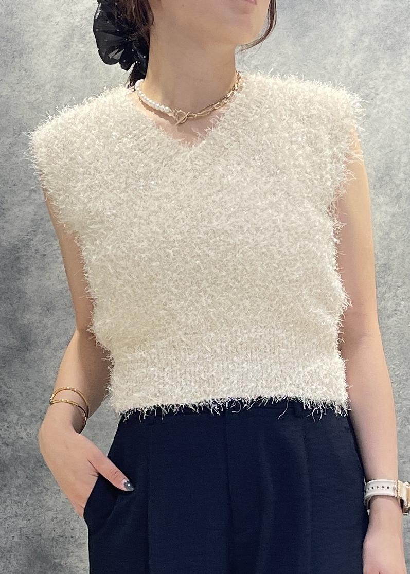 VIS【WEB限定サイズ:MT/着丈が選べる】【洗える】フェザーヤーンニットベストキナリ / M¥2,745レビューチクチクせず着心地が良いです!