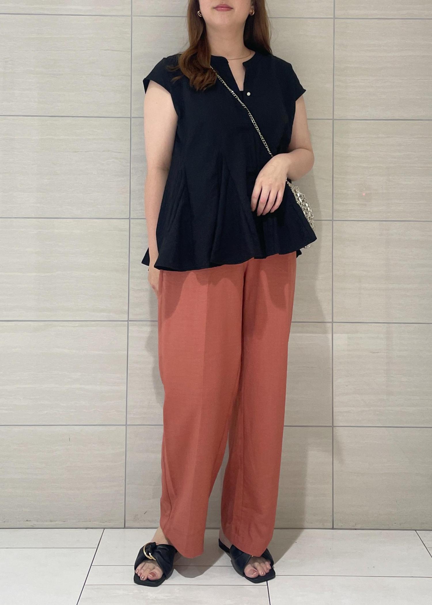 VIS【美easy】ワンタックワイドスラックスパンツ/洗えるオレンジ系 / M¥5,489レビュー163cm Mサイズ着用でくるぶし下くらいの丈感です。