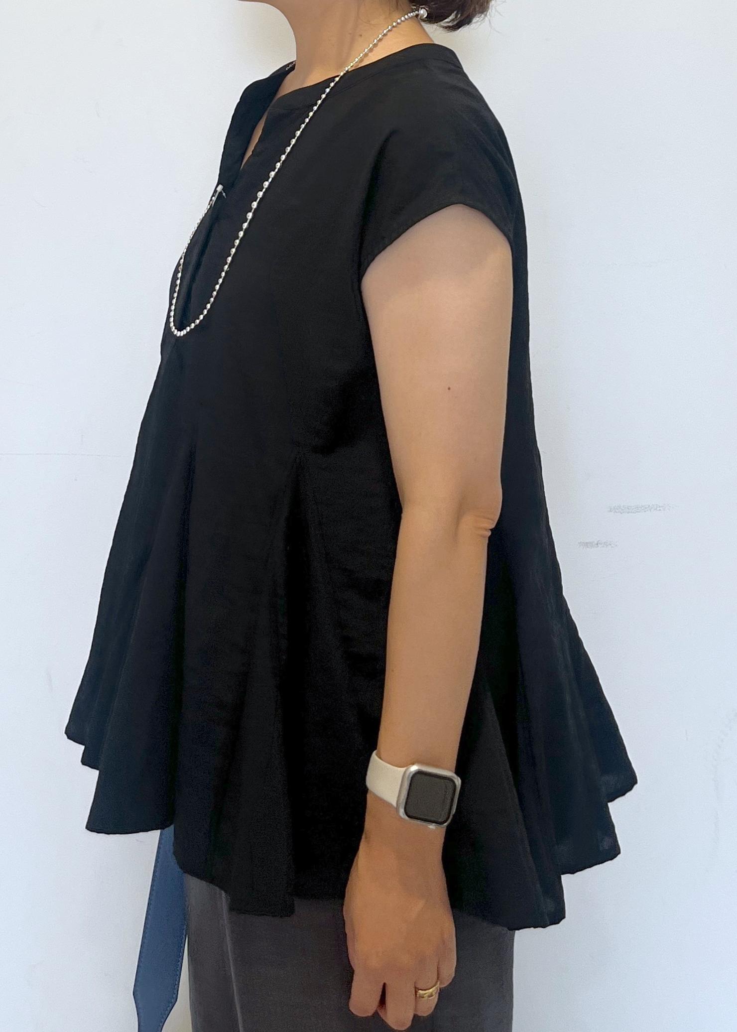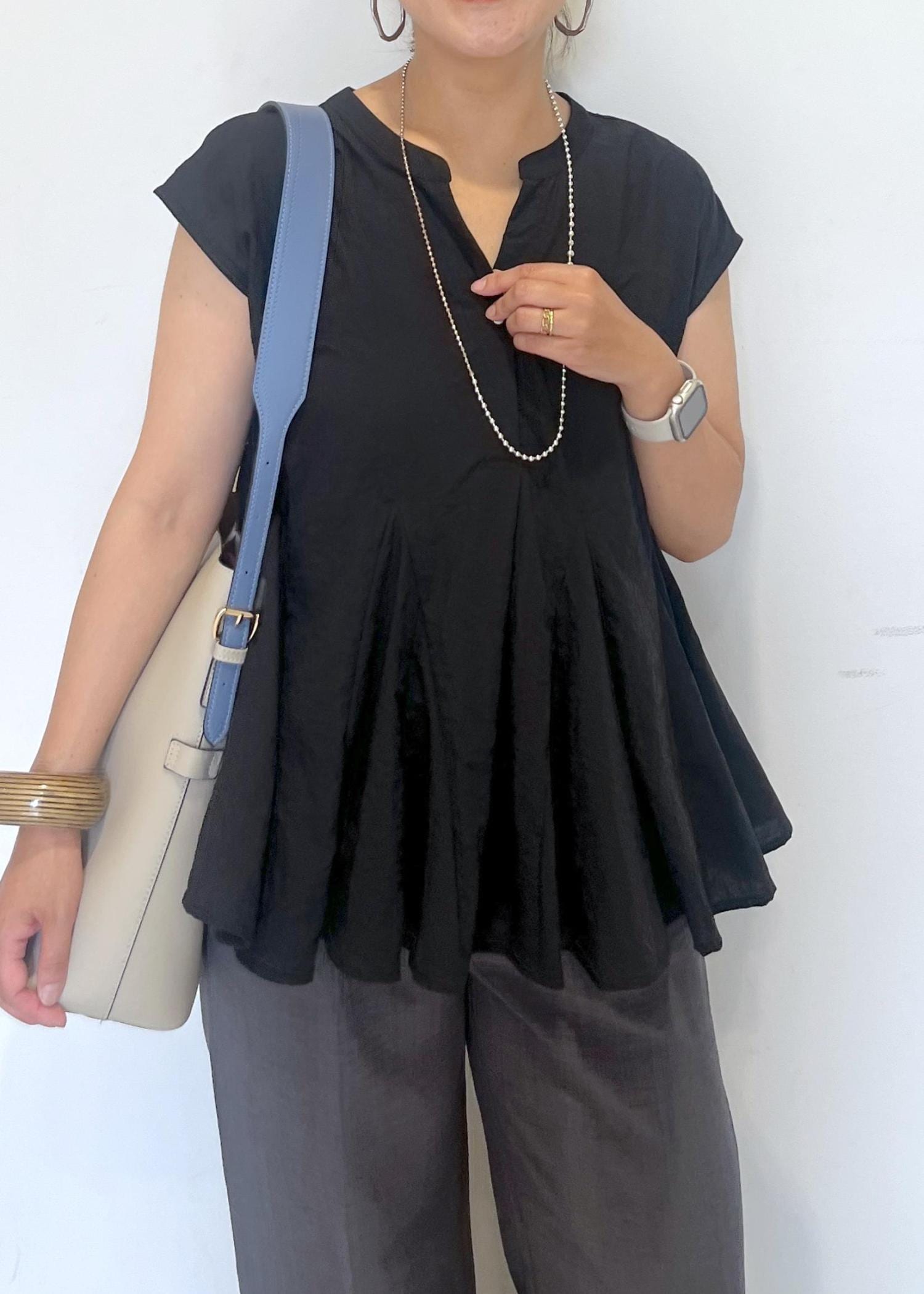 アウトレットVIS【防シワ/洗える】スキッパーフレアブラウスブラック / F¥3,293レビューフレア部分のボリュームもしっかりあり、着丈も159㎝が着用でヒップラインが隠れる程度るので気になるウエスト周りをカバーしてくれます。